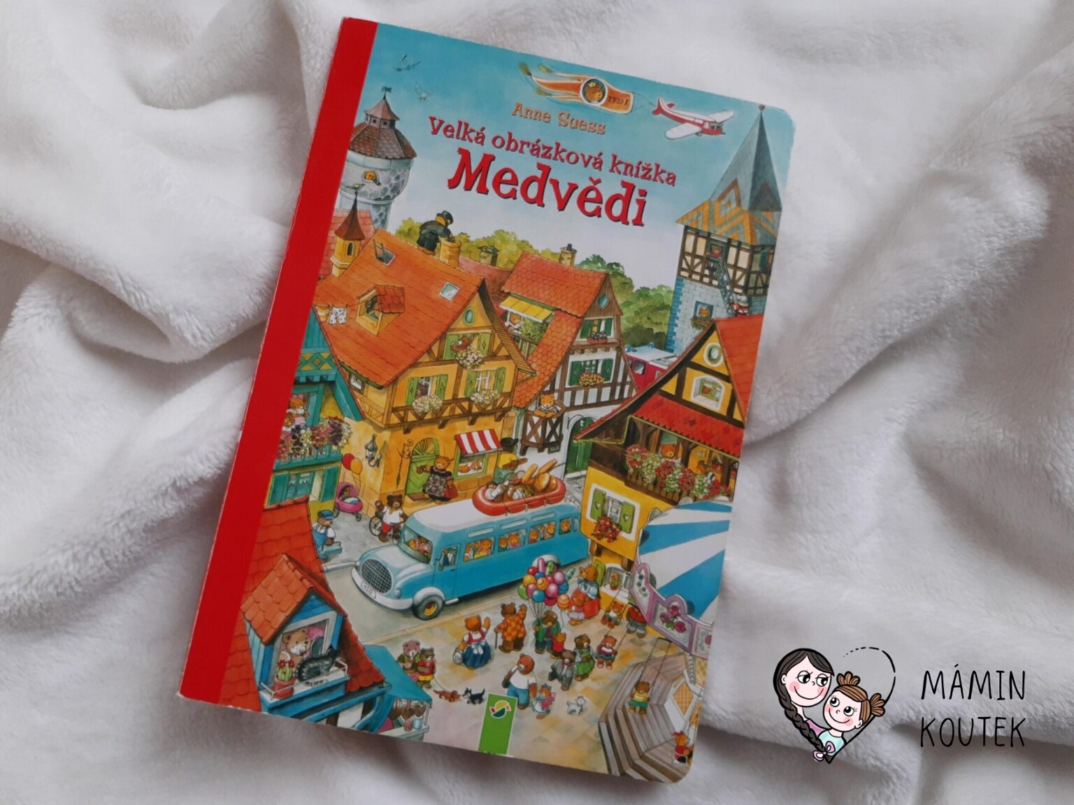 Na knížku Medvědi od Anne Suess jsem narazila náhodou v Levných knihách. Jednalo se o poslední kus a nestála proto ani stovku. Tak kdo by to nebral, že. Dceři ještě nebylo ani 9 měsíců, když jsem ji donesla domů. Počítala jsem, že se k ní dostaneme až později, ale světe div se, nedala ji z ruky! Pořád jsme ji museli obhlížet, až mi z toho šla hlava kolem.