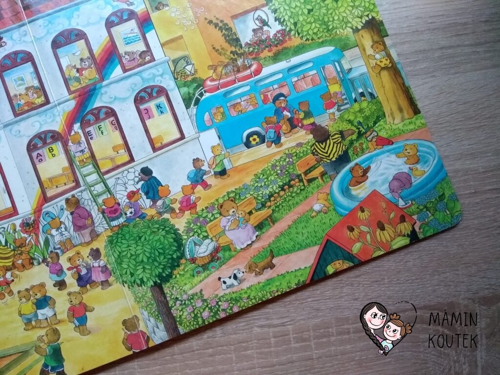 Chybělo mi trošku detailnější zpracování, třeba konkrétní druhy květin namísto obyčejného zeleného stromu, různorodé ptáčky apod. I tak ale kniha zaujala a co je hlavní, dítěti se moc líbila. A to u nás postava médi moc nefrčí. Pro dítě, které má medvídky v oblibě, bude kniha určitě ještě zajímavější.