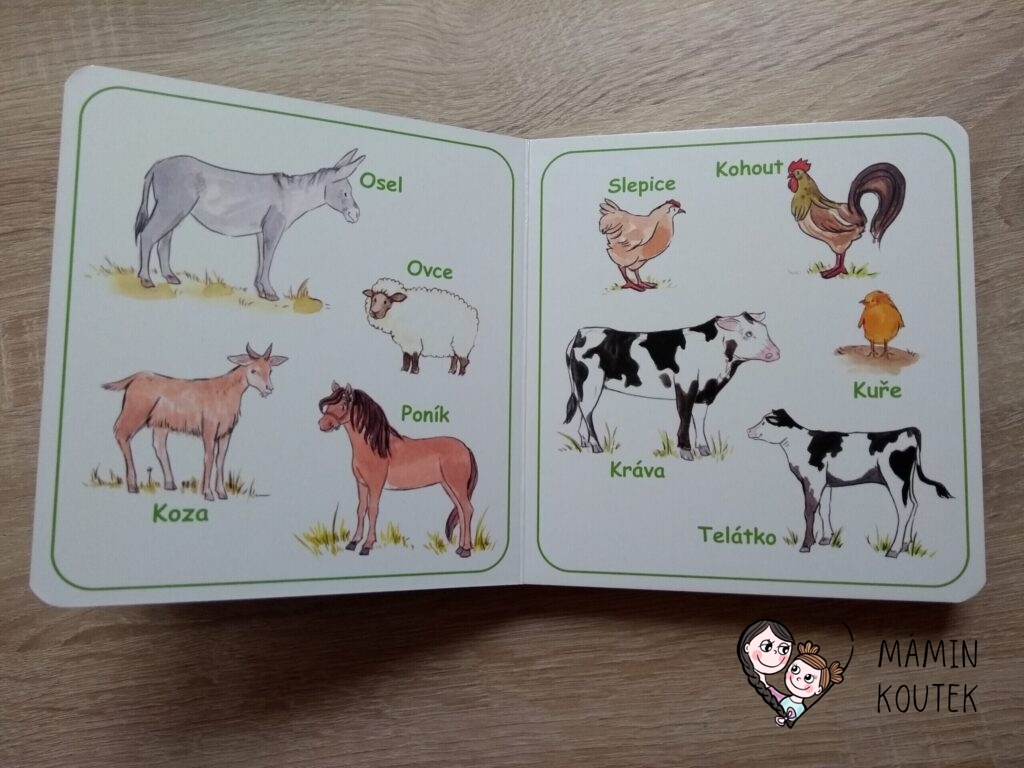 Každá knížka má 24 pevných stránek. Jsou menšího formátu (cca 15×15 cm), takže jsou skvělé také na cestování, do auta nebo kočárku. Máme je prozatím jen chvíli, takže nemohu posoudit jejich odolnost a kvalitu, ale zatím nemáme žádný problém.