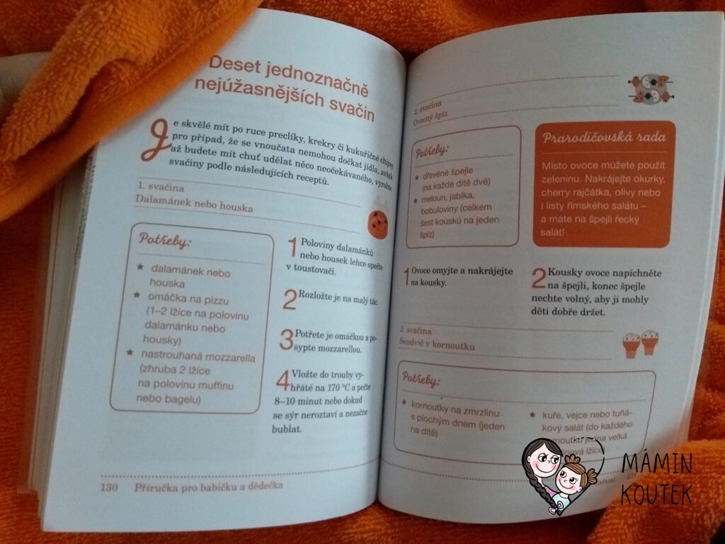 Musím říct, že tato část je opravdu hodně ze života a zaměřuje se na nejčastější problémy. Najdete zde třeba část o stravování, které bývá často boj. Protože ne všichni prarodiče si uvědomují, co děti skutečně mohou a co jim může uškodit. A kniha tohle nenásilnou formou uvádí.
