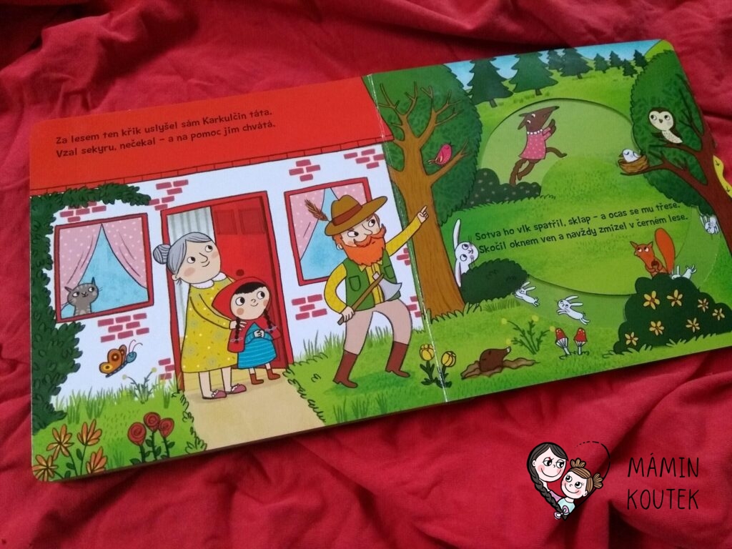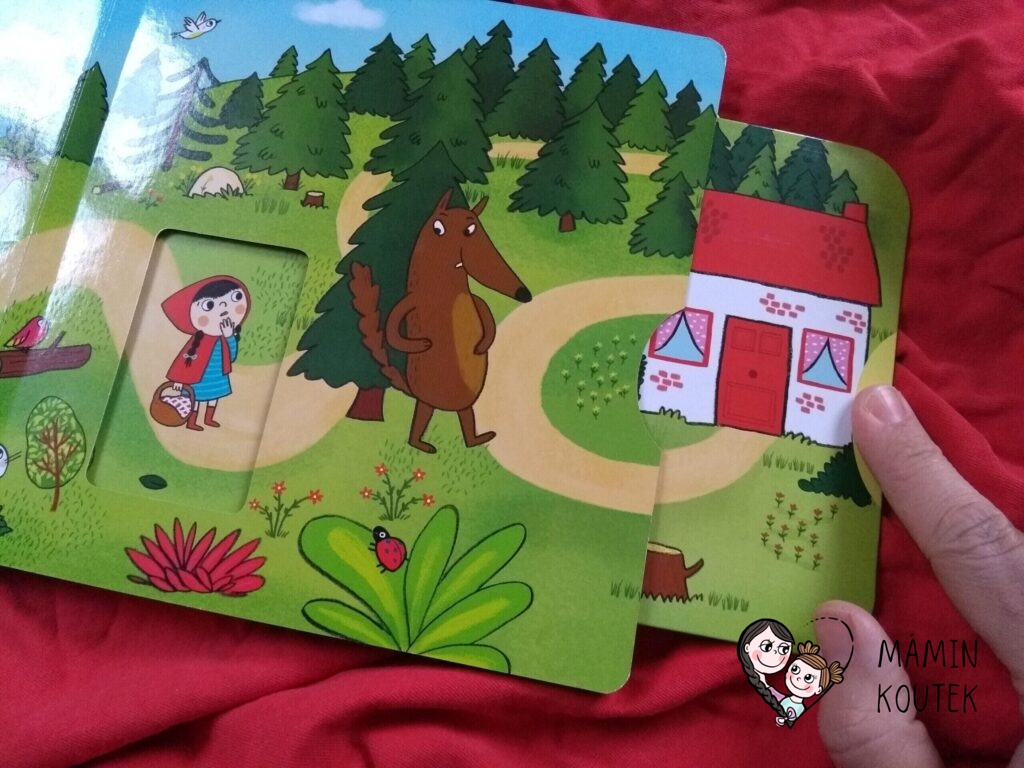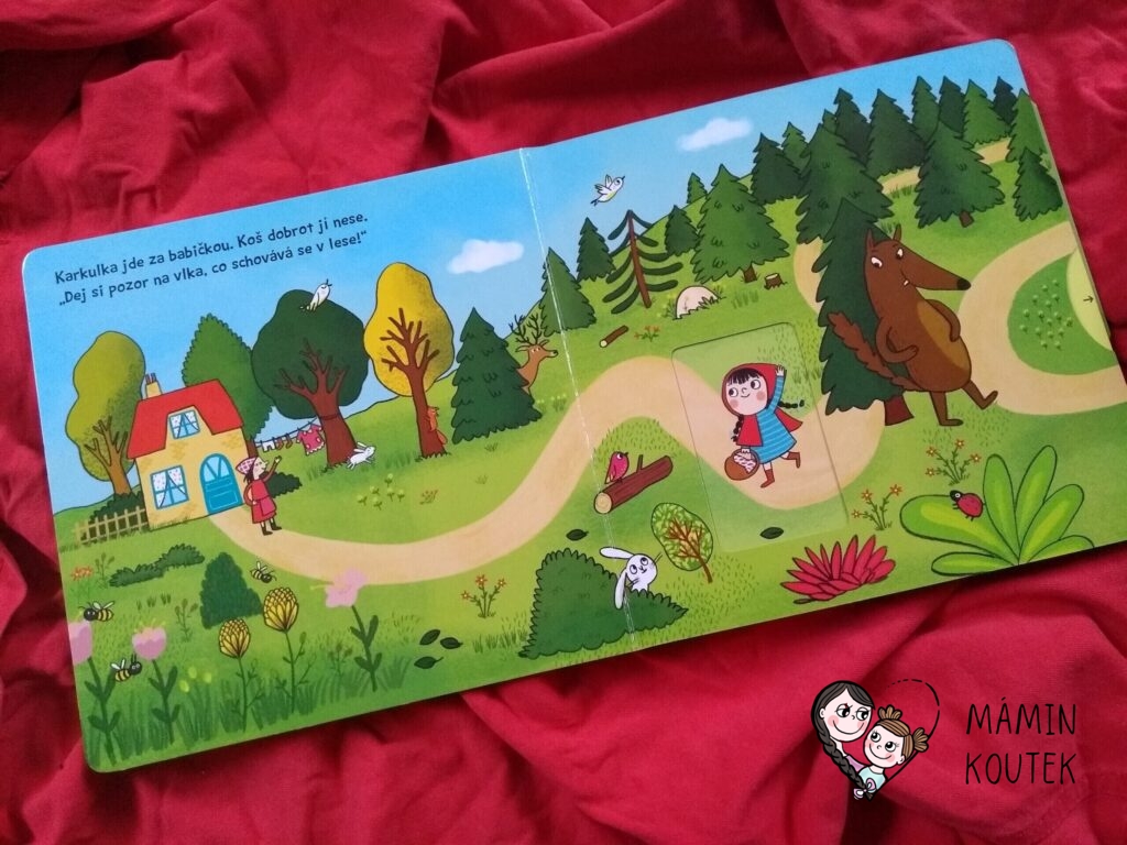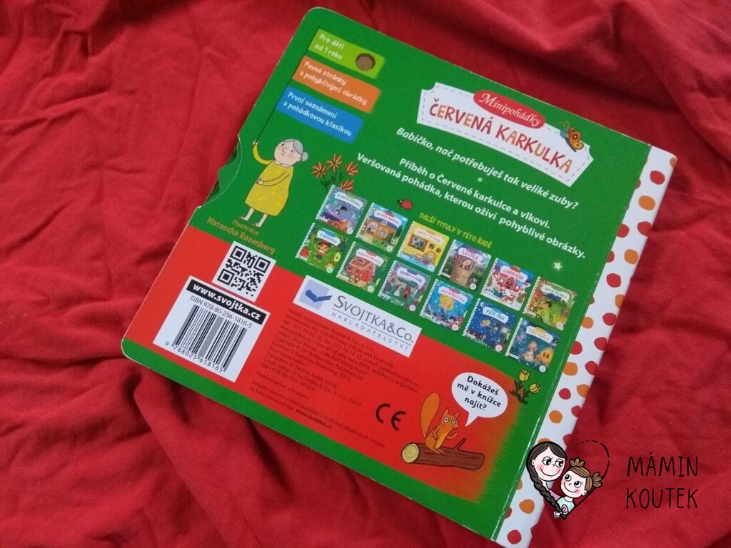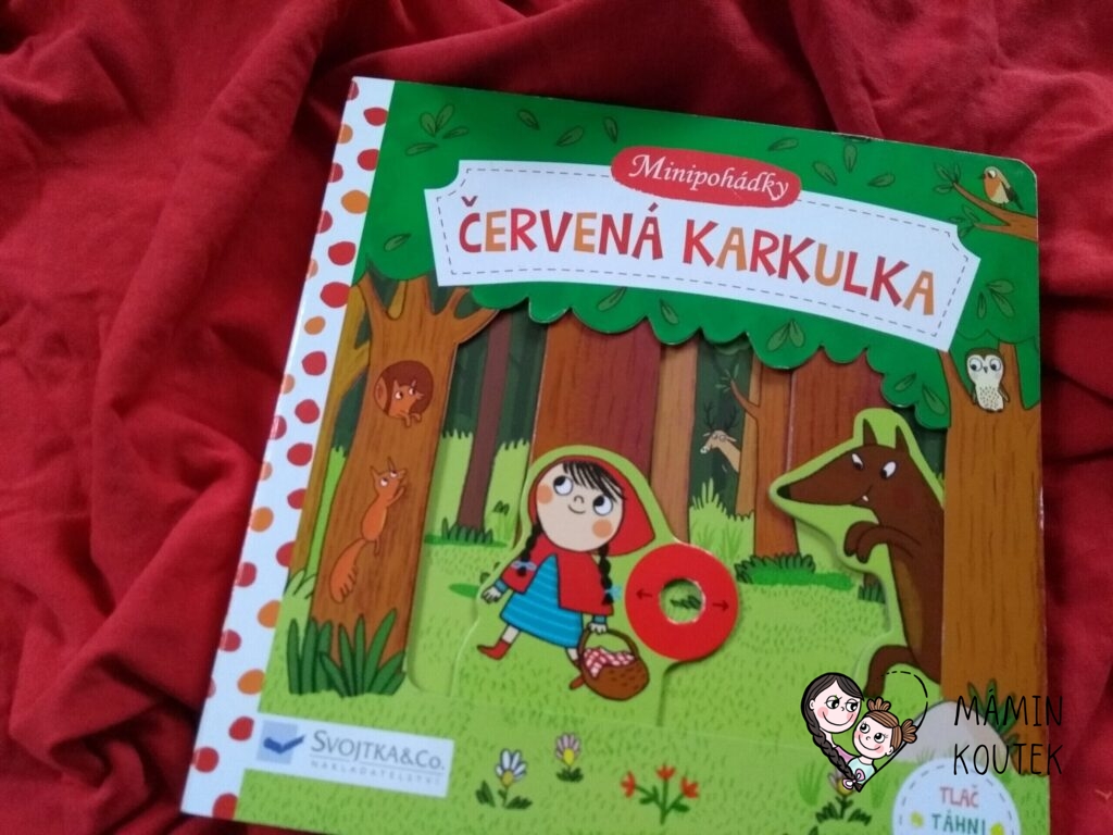 Obrázkové knížky s pohyblivými prvky umožňují dětem zapojit se do děje a u nás je právě teď období, kdy hrozně baví. Jsem ráda, že jsou takto zpracovány i klasické pohádky jako třeba Červená Karkulka. Když jsem četla tento příběh z normální knihy, vůbec nezaujal. Ale od doby, co máme Minipohádku od Svojtky, tak slyším celý den jen Karkulka, vlk a když někde jedeme, první v batůžku je právě tato knížka.