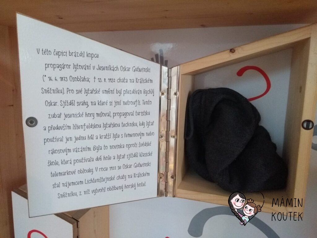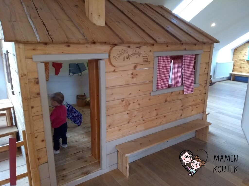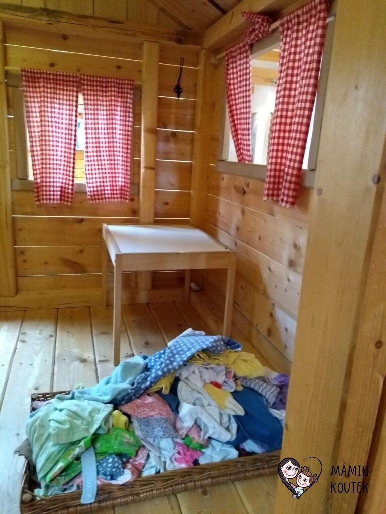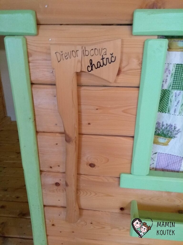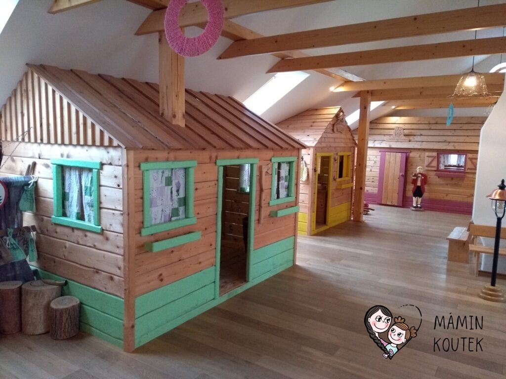 Hned vedle stojí dřevorubcová chatrč, ve které najdeme například jednoduchou spojovačku nebo obrázky a dřevěné makety hřibů. Ty visí po celé stěně a děti si je mohou také osahat a podrobně prohlédnout.
