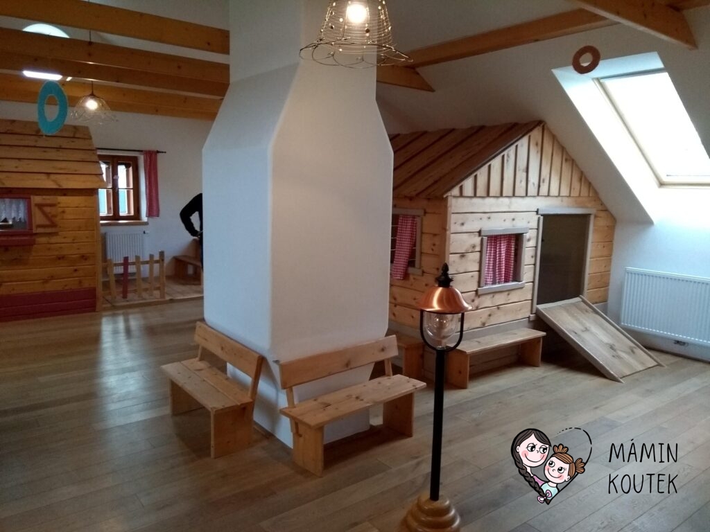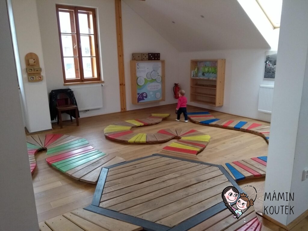 Nyní se ale přesuňme od dřevěných domečků dál. Pro malé děti je v muzeu k dispozici tzv. Batolárna, kde si mohou ležet, lézt a hrát si. Hraček je tady opravdu hodně, takže si určitě najde každý to své. Na zemi jsou pěnové puzzle. Celá batolárna se dá navíc zavít, aby děti neutekly.