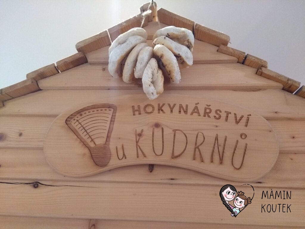 Třetí domeček, který měl u nás snad největší úspěch, je obchůdek (neboli Hokynářství u Kudrnů). Najdeme zde spoustu ovoce, zeleniny a dalších potravin, především z látky. Nechybí ani košíčky, dětská nákupní taška, síťovka nebo pokladna, na které si mohou děti nákup namarkovat.