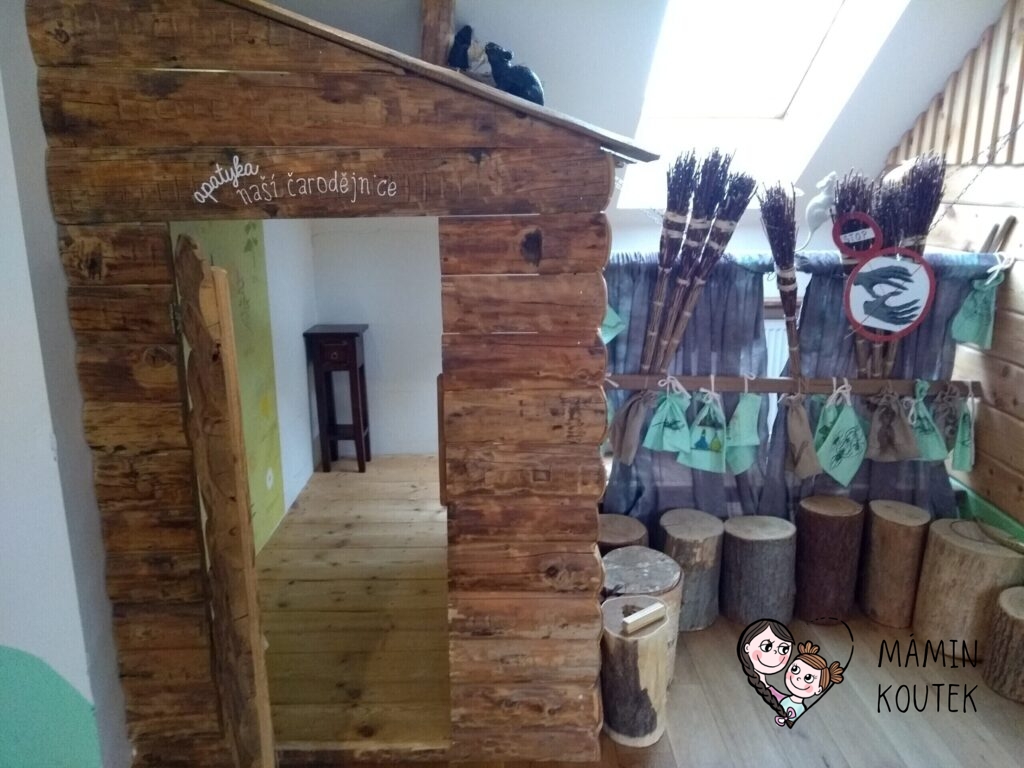 Každý domeček je vybaven tématicky. Například zde najdeme apatyku od čarodějnice, která je plná různých bylinek.
