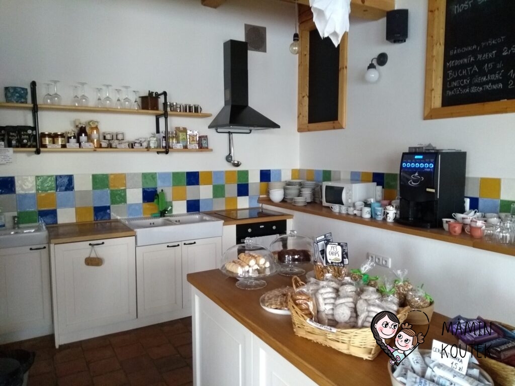 Jak už bylo zmíněno, na své si přijdou také rodiče. Při příchodu nám paní na recepci říkala, že si můžeme dát něco dobrého v kuchyňce. Po nějakém čase jsem tam proto vydali. A tohle jsme fakt nečekali. V kuchyni jsme našli kávovar s několika druhy kávy a čokoládou, bohatý výběr čajů, nealko nápoje, buchty, kremrole a různé další sladkosti. Kromě toho tu byly i zdravější pochutiny (raw tyčinky, různé džemy, sirupy, čatní a podobně).
