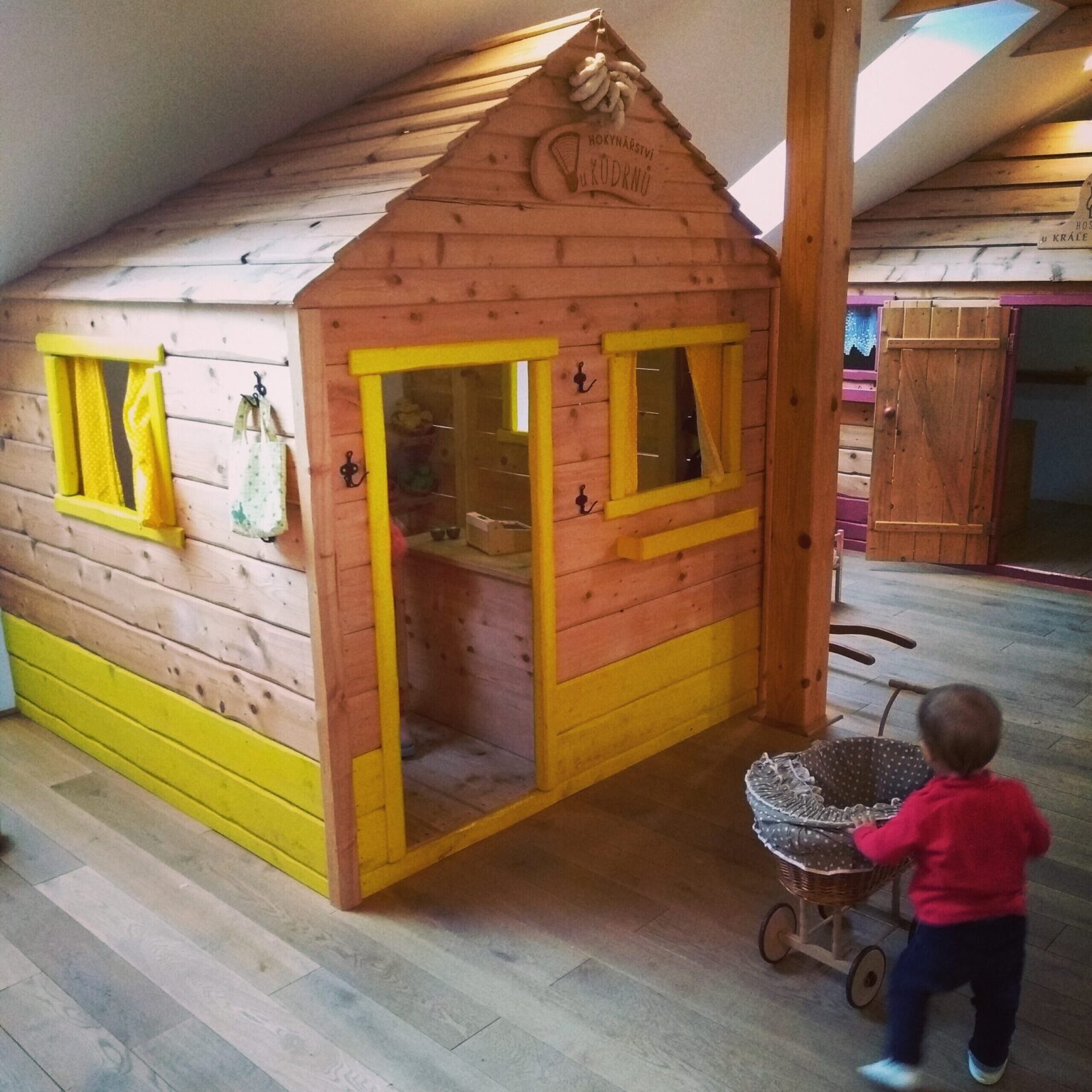 Snad jediné, co mi trošku chybělo, byla zábrana na schodech. Hračky a vlastně celá muzejní část se nacházela v prvním patře (dole byla jen recepce, kuchyňka a wc). Starší děti už třeba chápou, že na schody nesmějí. Malí raraši, co teprve pár týdnů chodí, ale zkouší vše. A tak jsme je museli několikrát ze schodu odhánět, aby nespadli. Ale to je jen drobnost. 🙂