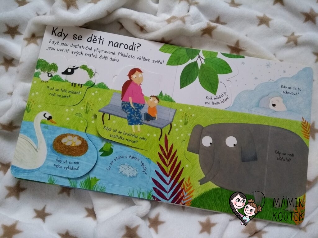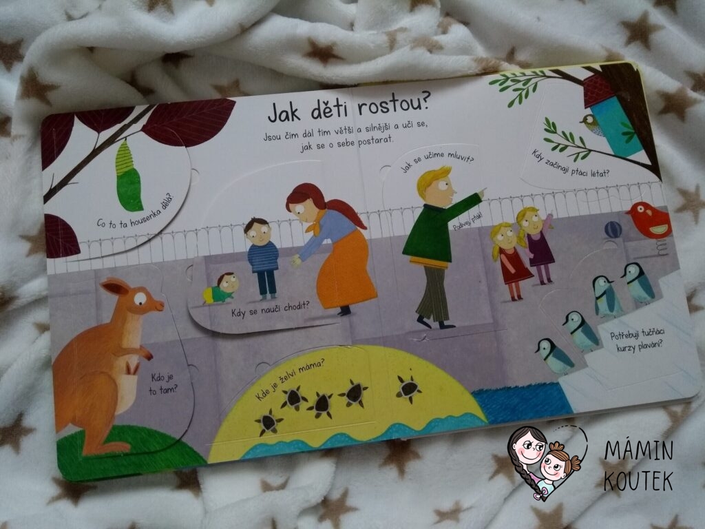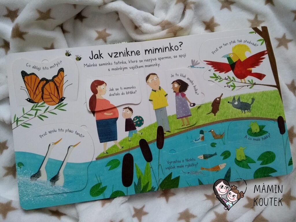 Jsem ráda, že někdo krásnou a přehlednou formou zpracoval téma, jak vznikají děti. Je to častá otázka dětí a někdy těžko hledáme slova, kterými bychom odpověděli. S touto knížkou je to ale mnohem snadnější. Má krásné ilustrace a otevírající okénka, za kterými je kromě textu i obrázek, takže baví malé i větší děti. Okének je přitom opravdu hodně, což je paráda.