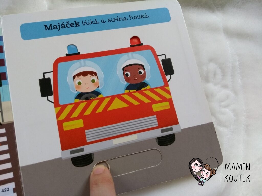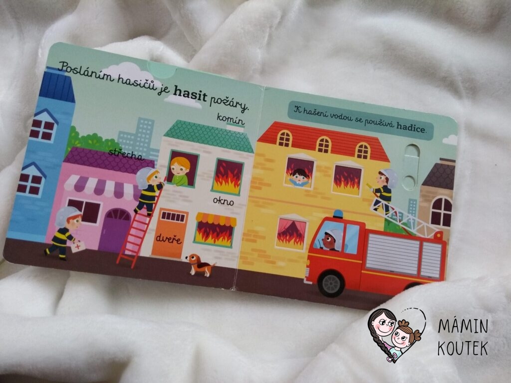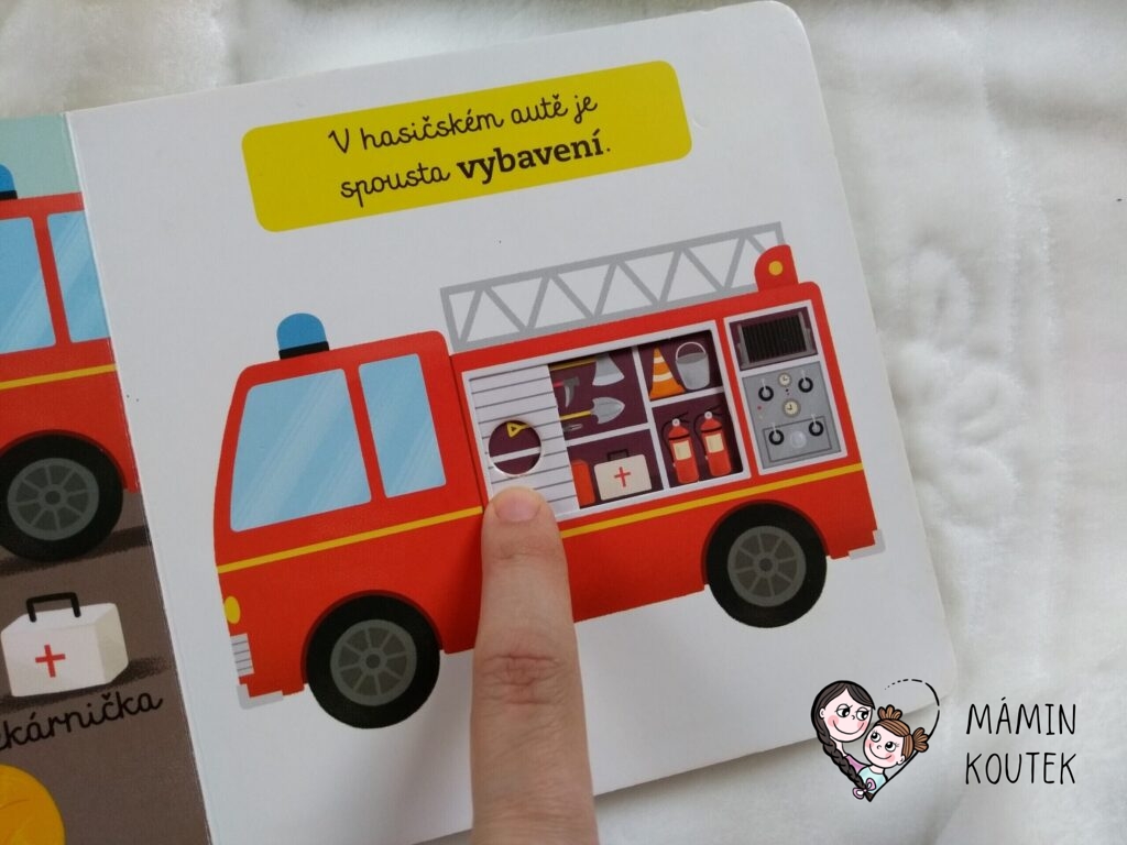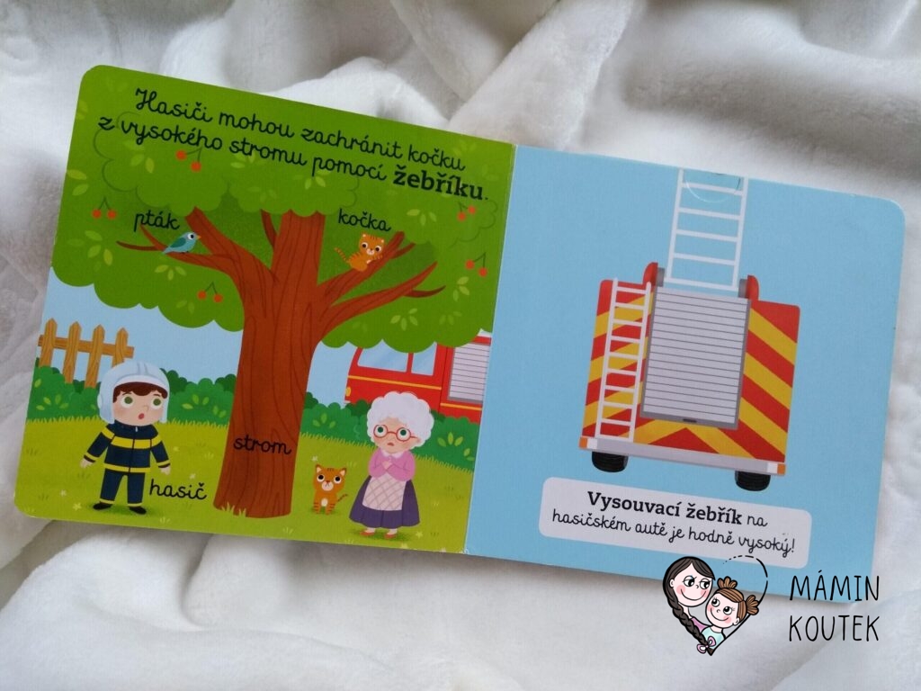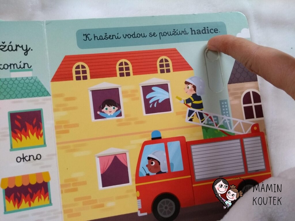 V nakladatelství Svojtka se dokonce na hasiče zaměřili v rámci své série Otoč, posouvej. Takže kromě barevných ilustrací a krátkých popisků v knize najdeme také různé pohyblivé prvky.