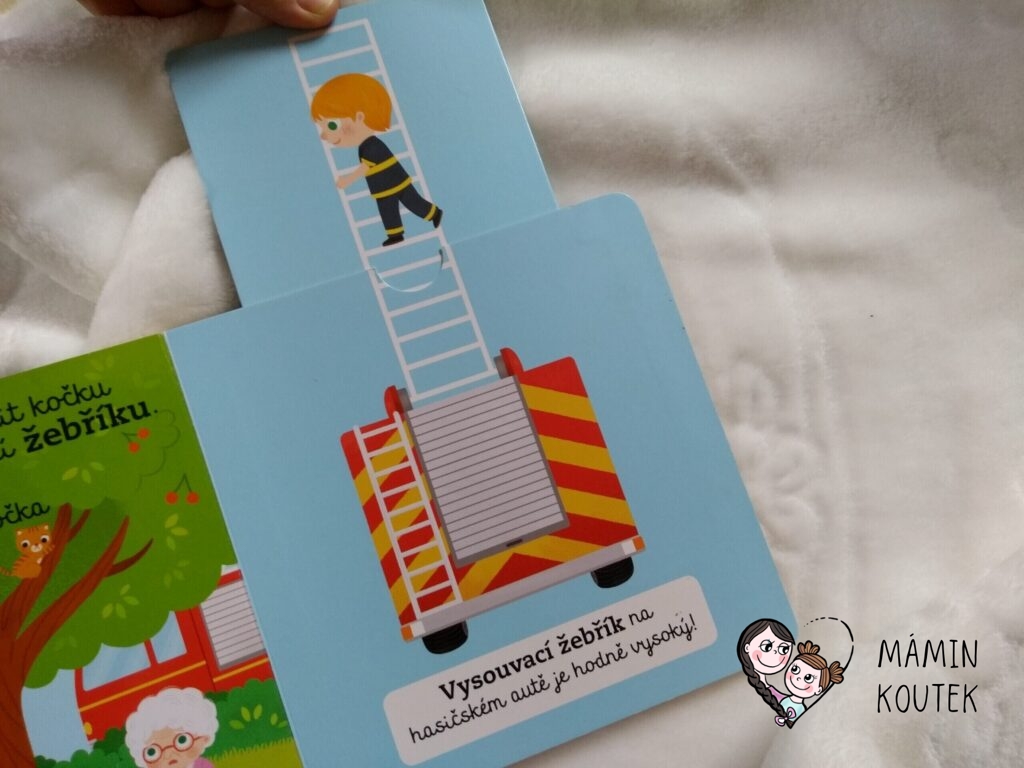 Líbí se mi, že se děti díky příběhům seznámí s tím, co hasiči dělají. Rozšíří si také slovní zásobu a samozřejmě procvičí motoriku díky pohyblivým částem. Pokud máte doma navíc milovníka hasičů, určitě bude nadšený. Pohyblivých prvků ale mohlo být trochu víc. Knihu jsme měli celkem brzo přečtenou. Není zde ani tolik detailů, o kterých by se dalo dlouho debatovat, jak je to u jiných knížek.