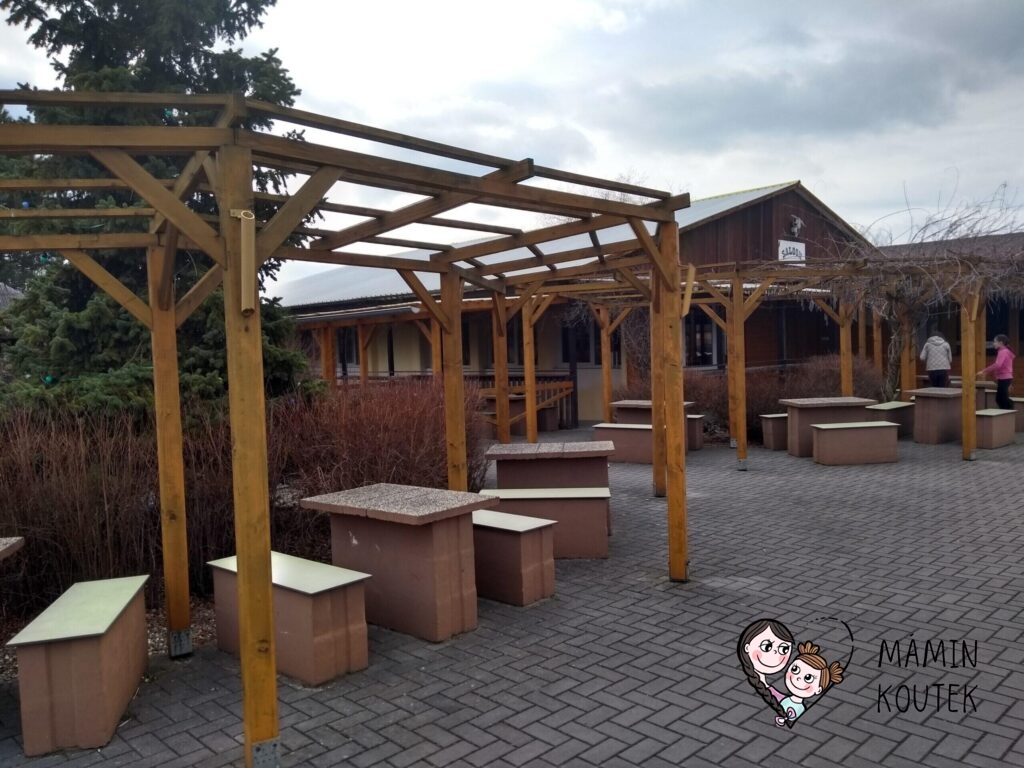 Pokud strávíte v areálu delší čas, určitě se bude hodit místo, kde se můžete občerstvit. To samozřejmě na dětském ranči nechybí. Je tady terasa, kde se dá v létě také grilovat. Navíc je venku vytvořeno posezení ze stolů a laviček, kde si můžete pochutnat na svých svačinách, což se bude hodit určitě nejen pro děti z mateřských a základních škol.