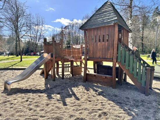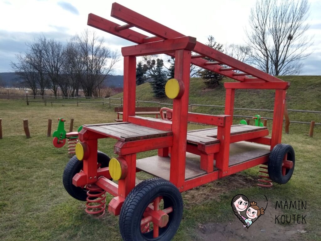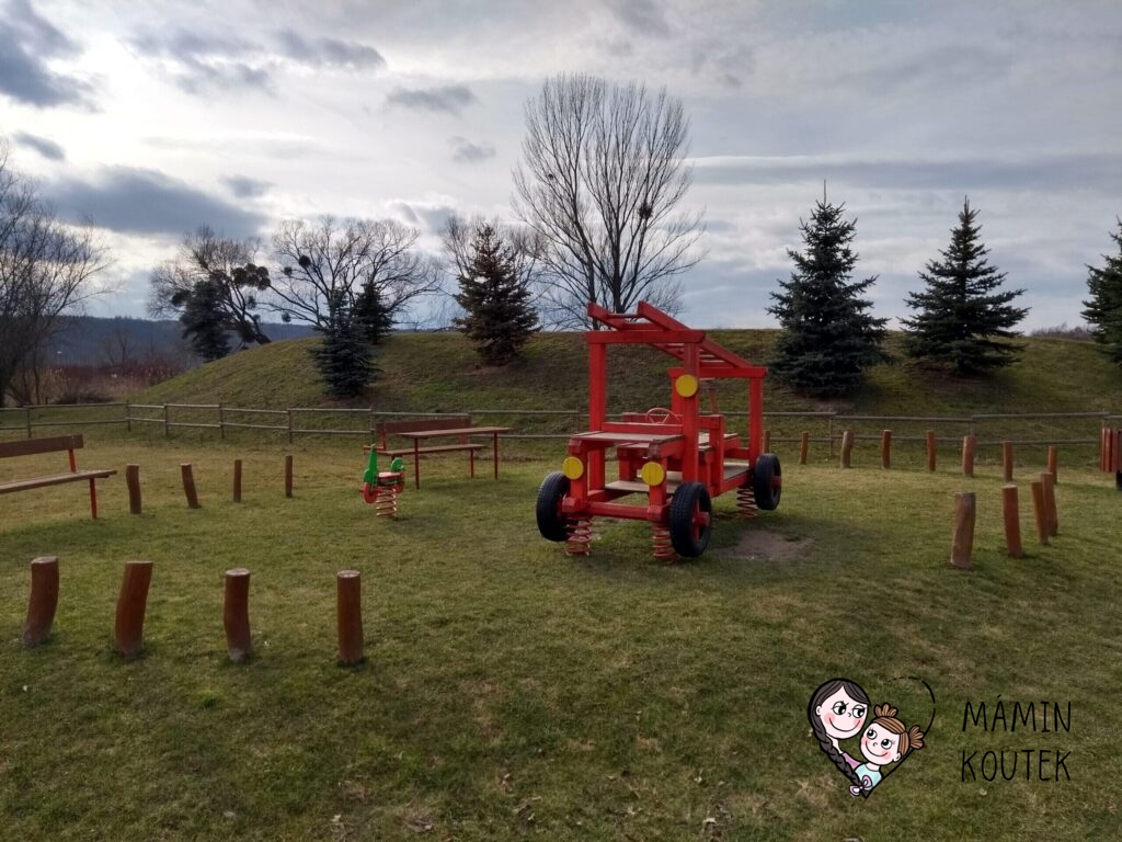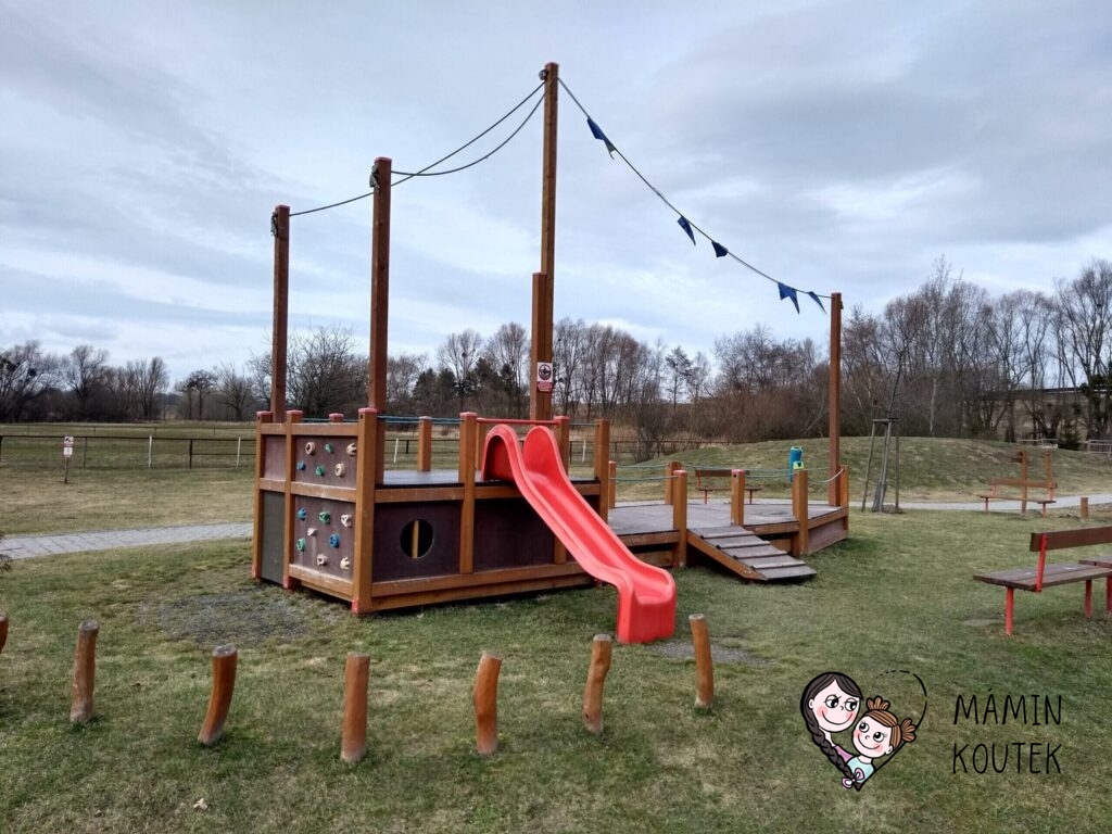 Pokud vás už zvířata omrzí, nevadí. Hned vedle výběhů je hřiště s nádhernými dřevěnými atrakcemi. Najdete zde prolézačky, houpačky, klouzačky, auta, velkou dřevěnou loď a mnoho dalšího. Nechybí ani ohniště, kde si můžete při dobrém počasí opéct párek. Všude jsou také lavičky na sezení a vzadu i krásný rybníček.