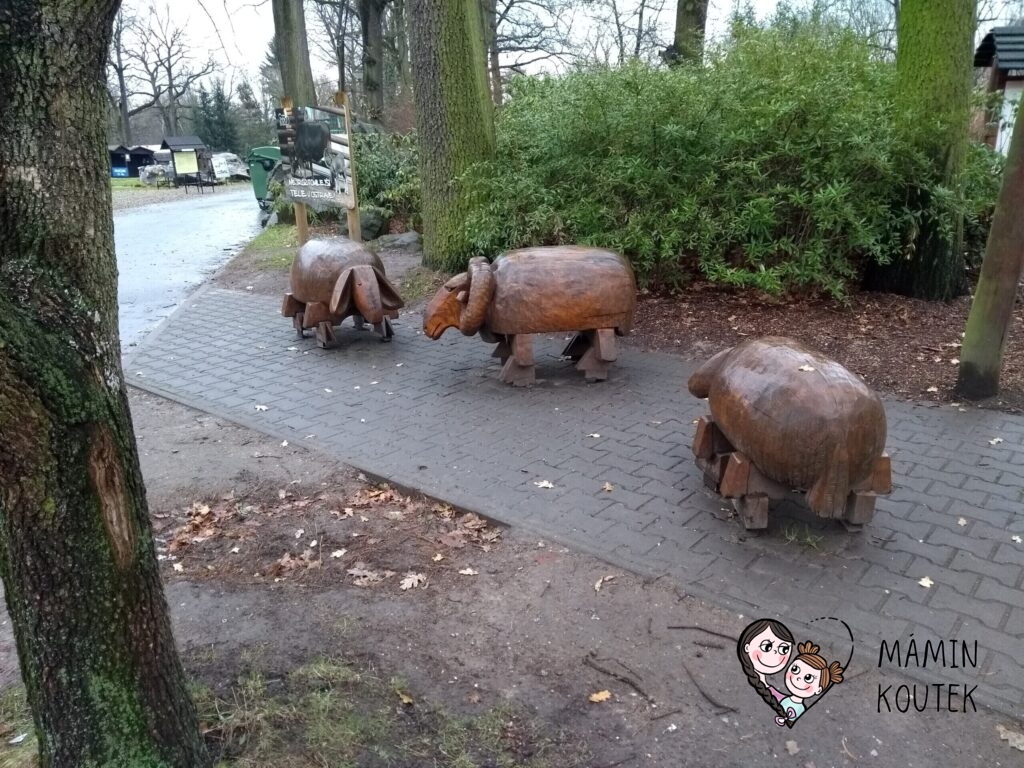 Nechybí ani sochy a dřevěné napodobeniny zvířat v životní velikost, které si mohou děti i dospělí osahat a pořádně prohlédnout.
