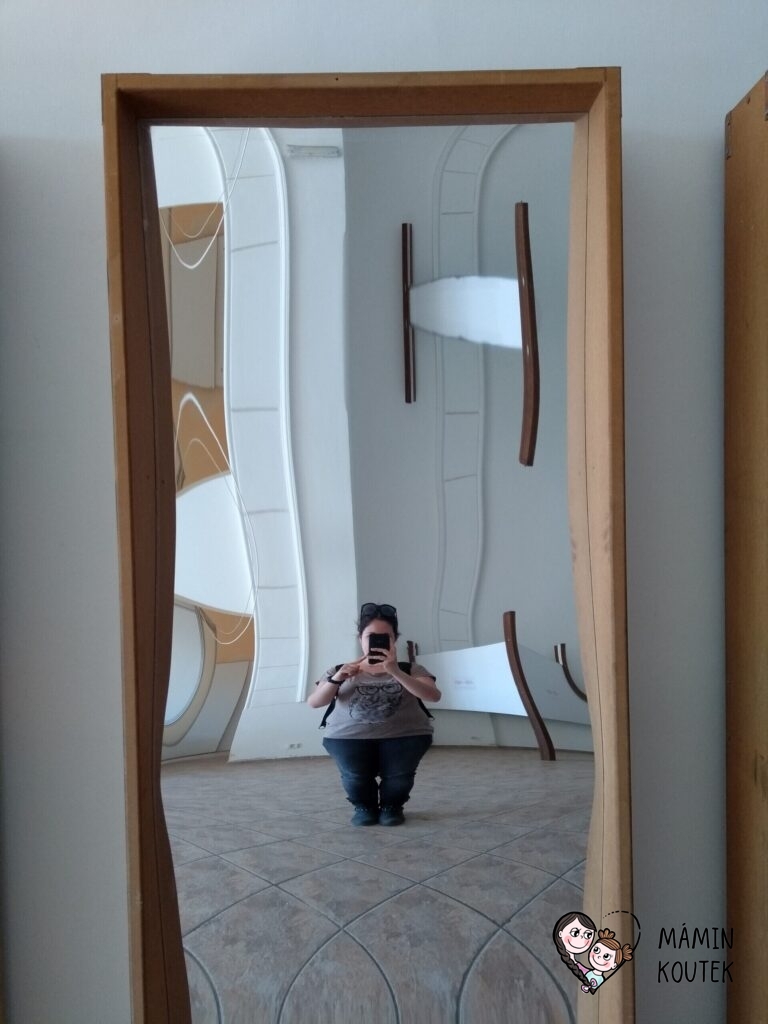 V přízemí vedle vstupních dveří najdete také křivá zrcadla, která vaši postavu různě přetvoří. Některá vám vykouzlí dlouhé nohy, jiné vysokou hlavu, v dalším jste chudí, v jiném zase pěkně kulatí…