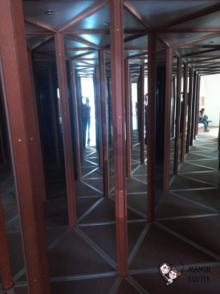 Při vstupu do budovy jsme si zakoupili lístky a dostali jsme doporučení, ať začneme s prohlídkou od 1. patra a až poté si projdeme spodní bludiště. A proto jsme se tak i vydali. Ještě jsme byli upozorněni, ať používáme při pohybu v bludišti mikrotenové rukavice, které visí u každé atrakce. Tenhle požadavek mě trošku překvapil, ale při vstupu do bludiště jsem pochopila. Pokud si nechcete rozbít nos, jdete hlavně „po hmatu“. A kdo by chtěl pořád čistit tolik zrcadel…