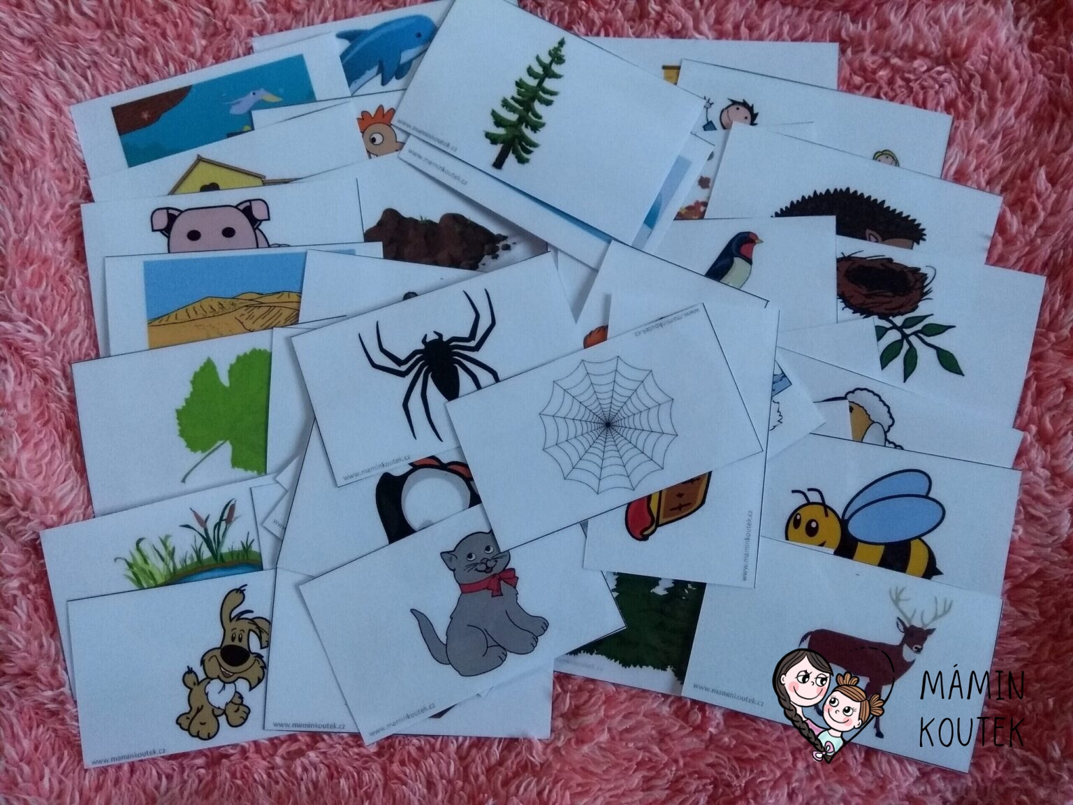 Celý soubor kartiček si můžete opět zdarma stáhnout zde. Doporučuji vytisknout a zalaminovat. Pokud nemáte laminovačku, vůbec nevadí. Zkuste nalepit třeba na karton a přelepit lepící páskou. Pak stačí jen vystřihnout a zábava může začít.