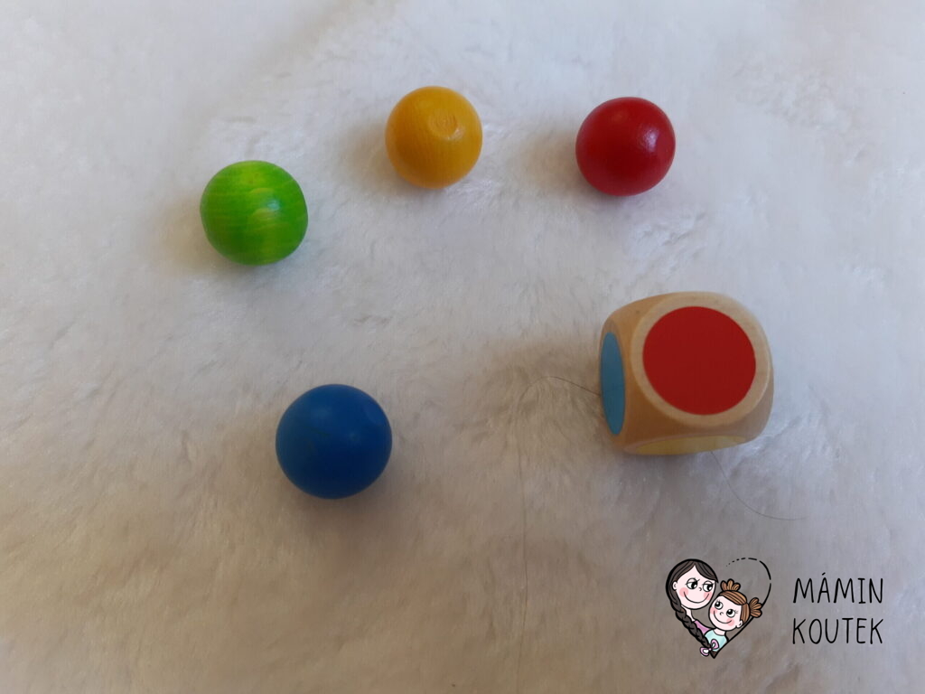 My jsme vyzkoušeli okolo druhého roku. Z počátku se Beky učila hlavně koulet kostkou a dávali jsme jednu kuličku společně do díry dle barvy, která padla na kostce. Pro malé dítě dát kuličku přesně do otvoru je náročné, takže jsme si i tak užili spoustu legrace, když kulička různě odskakovala, propadla větším otvorem až dolů nebo Beky vypadla z ruky a podobně. Jakmile pochopila princip, začali jsme postupně hrát podle pravidel.