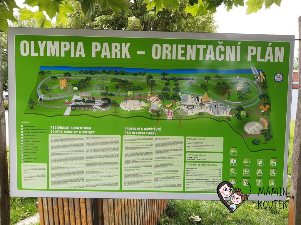 Olympia park sídlí vedle nákupního centra Olympia v Brně. Je otevřen v období od dubna do října, a to každý den v čase 10-22 hodin. Vstup je zdarma, platí se jen cesta vláčkem a horolezecká stěna. Hned naproti parku je velké parkoviště, kde je možné zdarma zaparkovat.