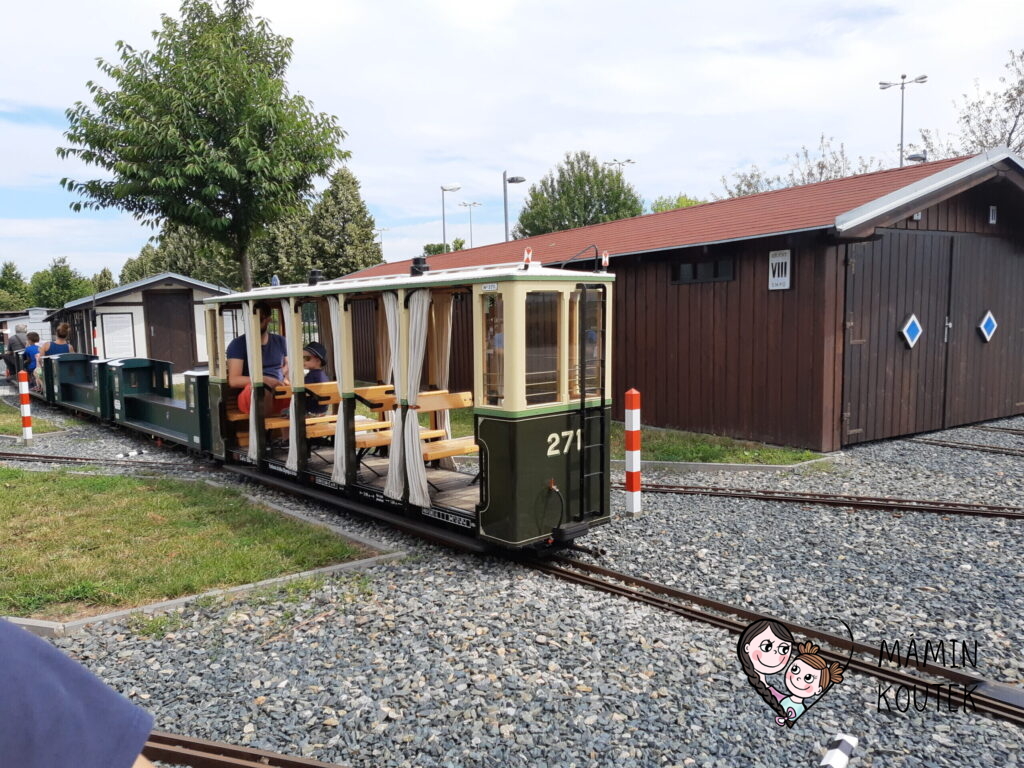 Největší zážitek měla ale celá naše rodina z parkové železnice. Zmenšeniny vlaků, drážních budov, vlakových značení, mostů a různých další doplňků nás uchvátily natolik, že jsme si hned zakoupili jízdu (50 Kč/ osoba). Trať, po které vlak jel, byla dlouhá 1,6 km. Jízda trvala asi 15 minut, ale uběhla strašně rychle. Projeli jsme se celým areálem. Kolem nás jezdily další vláčky, které různé houkaly. Některé byly na uhlí, jiné na elektriku, stejně tak některé byly otevřené, jiné uzavřené. Vláčky jezdily celkem často, takže jsme se bez problému vešli a ani jsme dlouho nečekali.