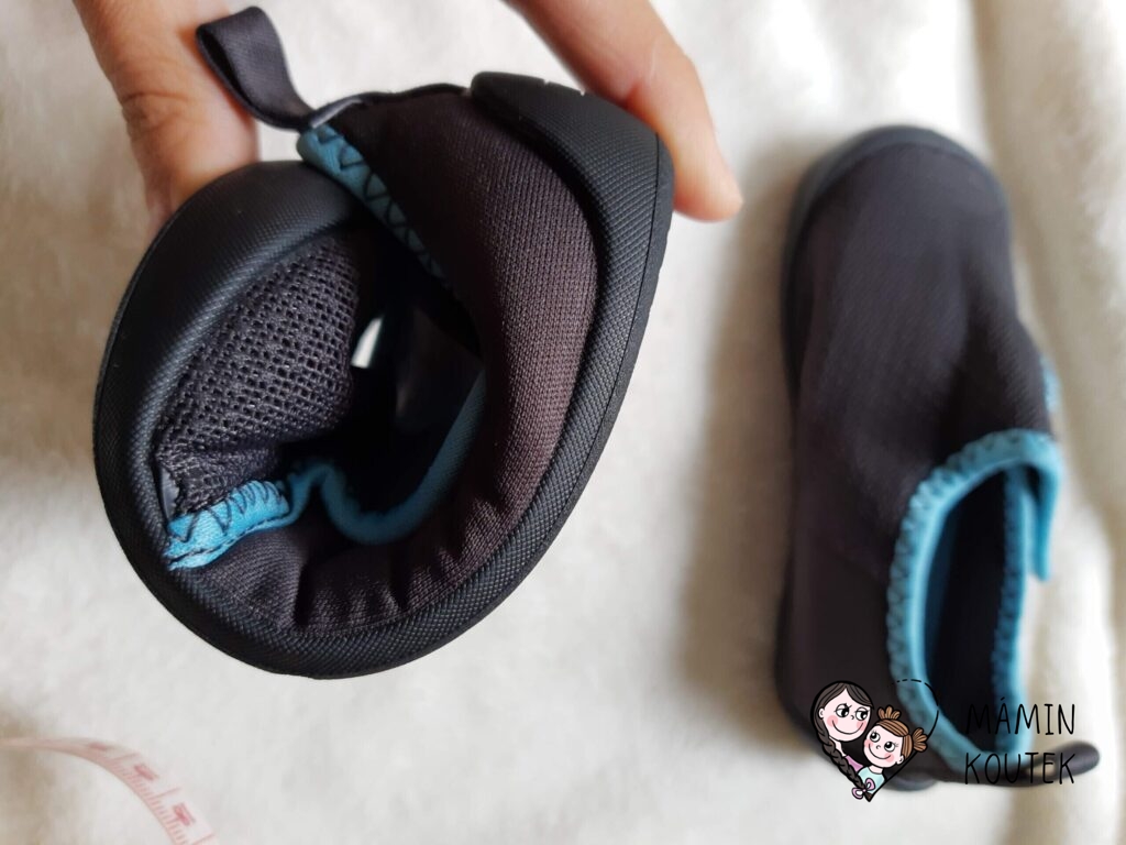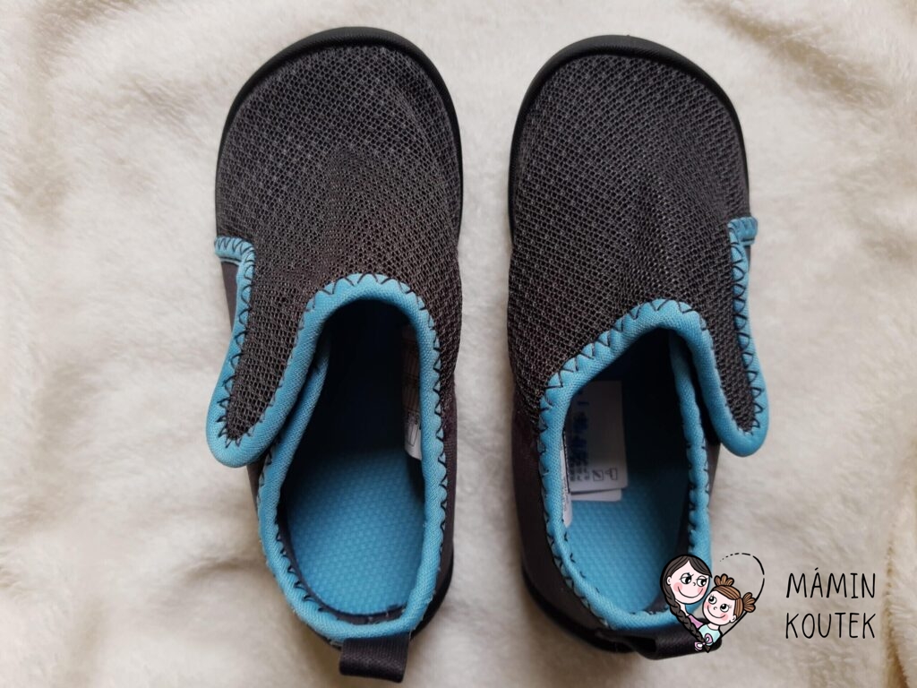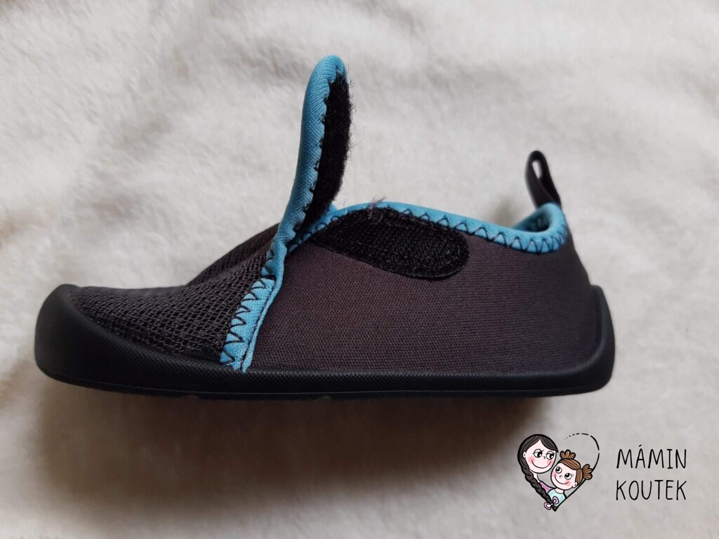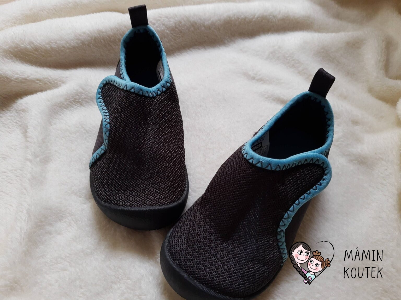 Původně jsme uvažovali nad decathlonovými cvičkami babylight, protože jsou z hlediska barefoot lepší. Ale ty nemají de facto podrážku – je zde pouze nalepen protiskluz, což je na jednu stranu dobré, ale na hřiště bych se toho bála (obzvláště u nás, kdy tam bohužel lidé nechají kdovíco).