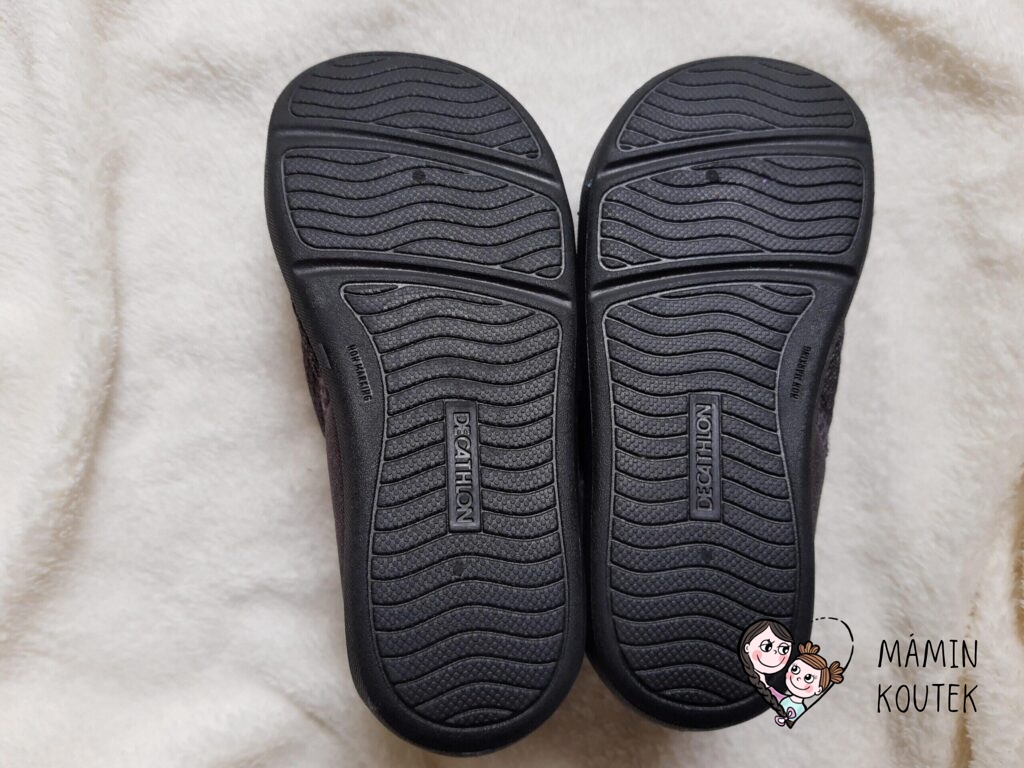 Dětské cvičky z Decathlonu mají gumovou podrážku, která je ale krásně ohebná a měkká. Boty nekloužou, takže se skvěle hodí na různé cvičení a pohybové aktivity.