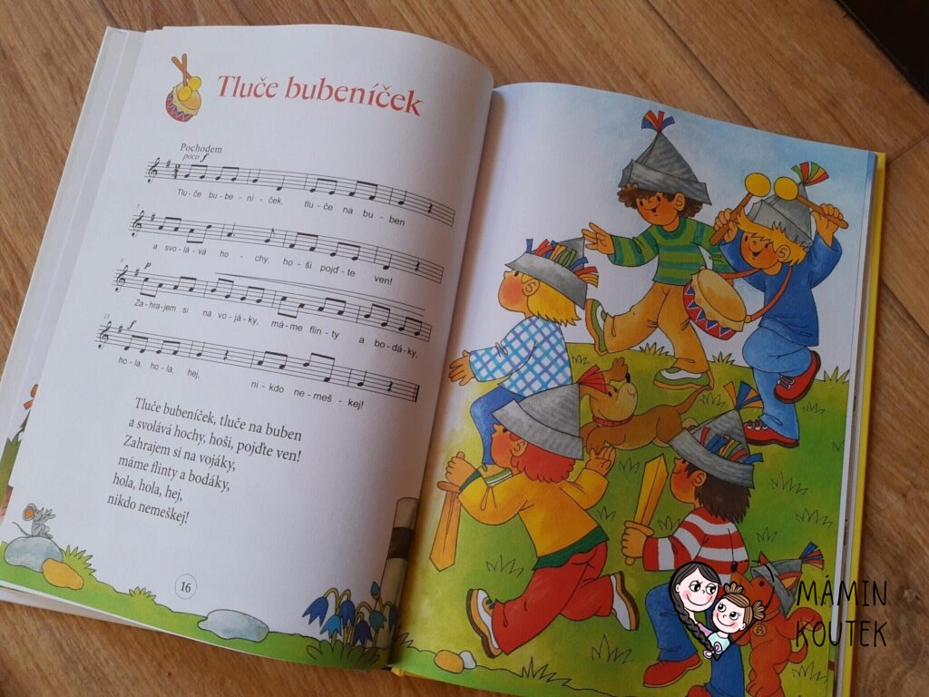 Pokud ale doma s hudebními nástroji nezpíváte a jde vám pouze o texty písniček, zpěvník vás určitě zaujme. Písmenka jsou větší, takže jsou vhodné i pro začínající čtenáře. Mladší děti pak písničky mohou poznat podle obrázků.