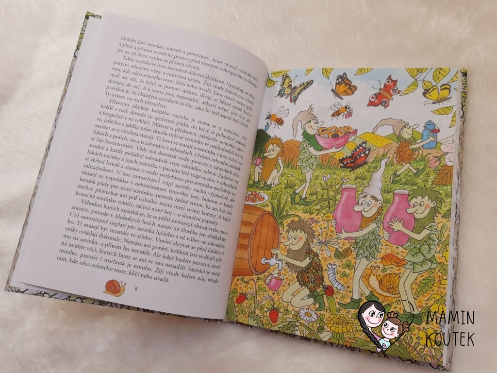 Celá kniha je rozdělená do krátkých kapitol, takže se dá skvělé číst i večer před spaním. Ilustrace jsou pestré a děti si díky nim lépe představí, jak vlastně takový sazínek vypadá a co dělá.