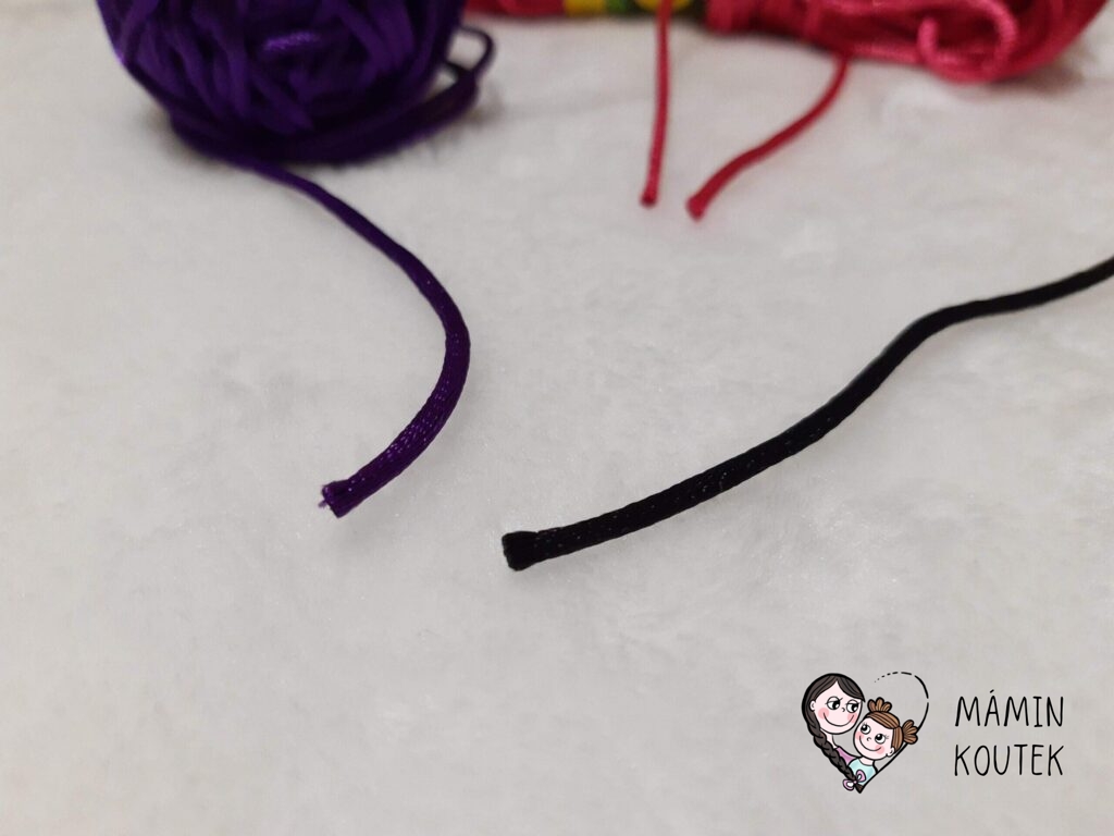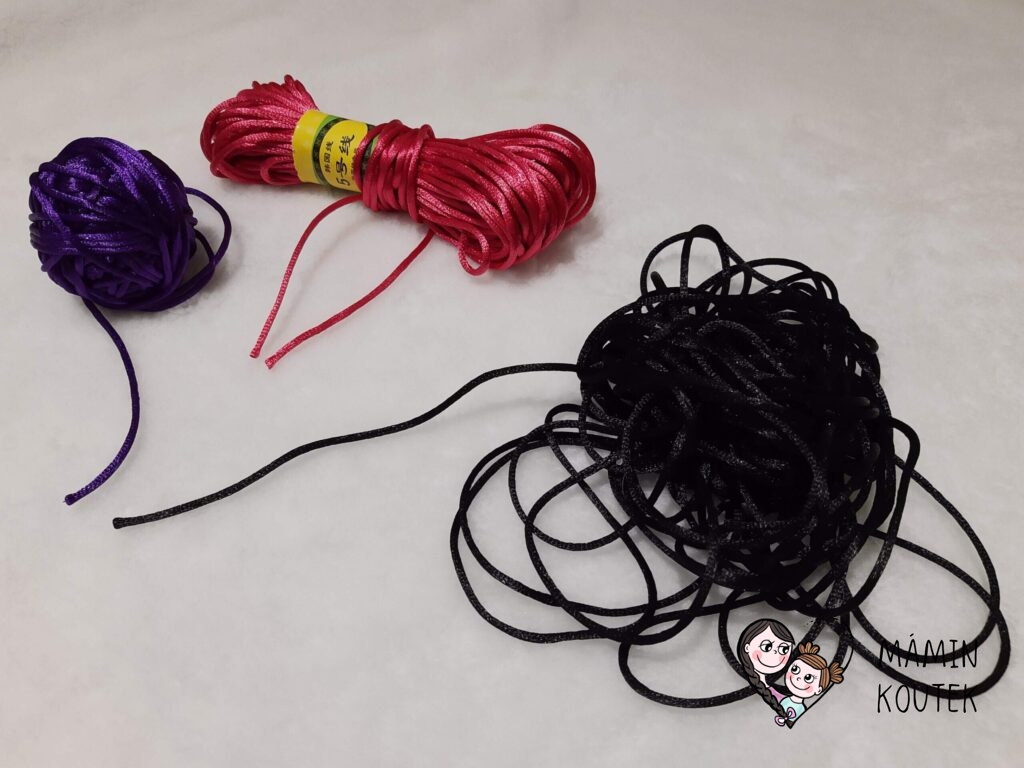 Na Aliexpress koupíte šňůrky různých barev i průměru. Na kojící korále používám nejčastěji černou, protože pak alespoň nejdou vidět tolik uzávěry. Průměr doporučuji 2mm. Na Aliexpress je najdete pod označením Satin Nylon Cord. Cena: 1-4 Kč/m. Nejmenší množství pro odběr: 20 m. Odkaz ke koupi třeba zde.