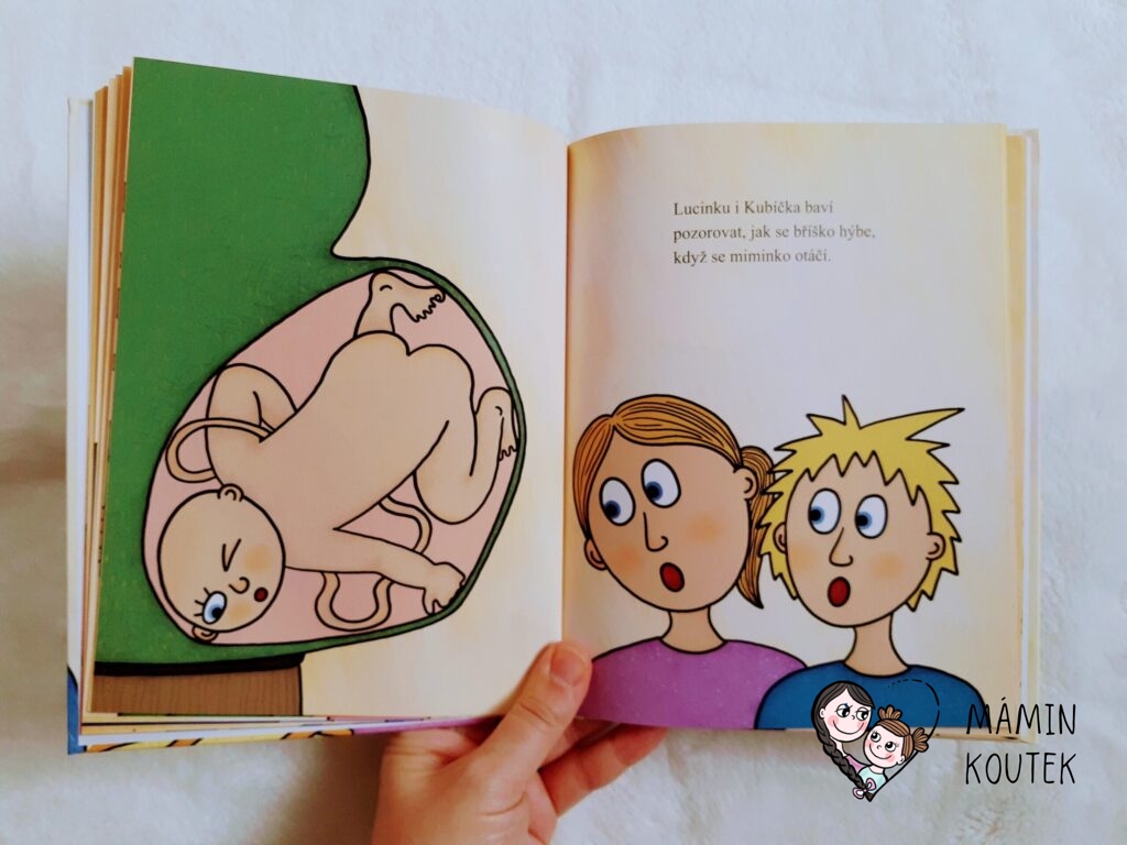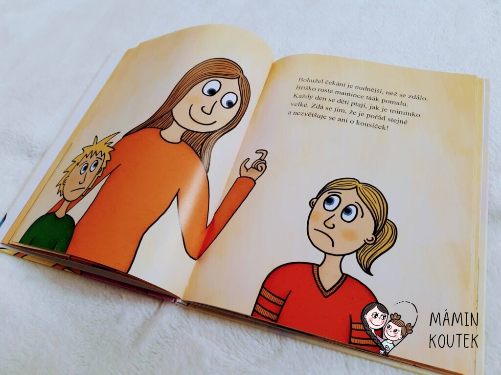 V příběhu děti hodně zjednodušenou formou vidí, co vše může obnášet čekání na sourozence a jeho příchod na svět. Jak se bude cítít maminka? Jak to bude vypadat, až přijde miminko na svět? A bude s ním legrace?