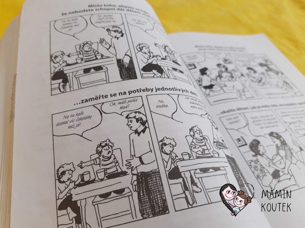 Není to totiž kniha s nějakou nudnou teorií. Naopak zde najdete hlavně příběhy ze života, návrhy na řešení různých výchovných situací v podobně obrázků a pokud je teorie obsažena, tak jen v krátkých shrnutích na konci kapitoly. Kniha se tedy čte moc dobře a je vhodná pro rodiče jak malých, tak i velkých dětí.
