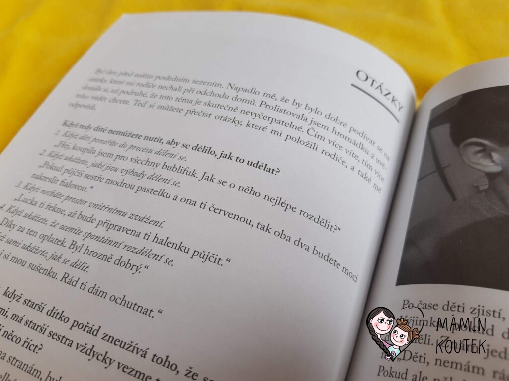 Vše je pak doplněno o otázky, které rodiče k tomuto tématu mají. Například jak některé rady aplikovat v praxi, když je situace trochu jiná nebo že už vyzkoušeli některé uvedené postupy, ale nepřinesly požadovaný výsledek. Autorky tedy rozvádějí své doporučení, aby ho rodiče lépe pochopili.