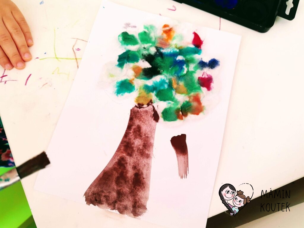 - Poté dokreslíme hnědou kmen a dáme výtvor uschnout.