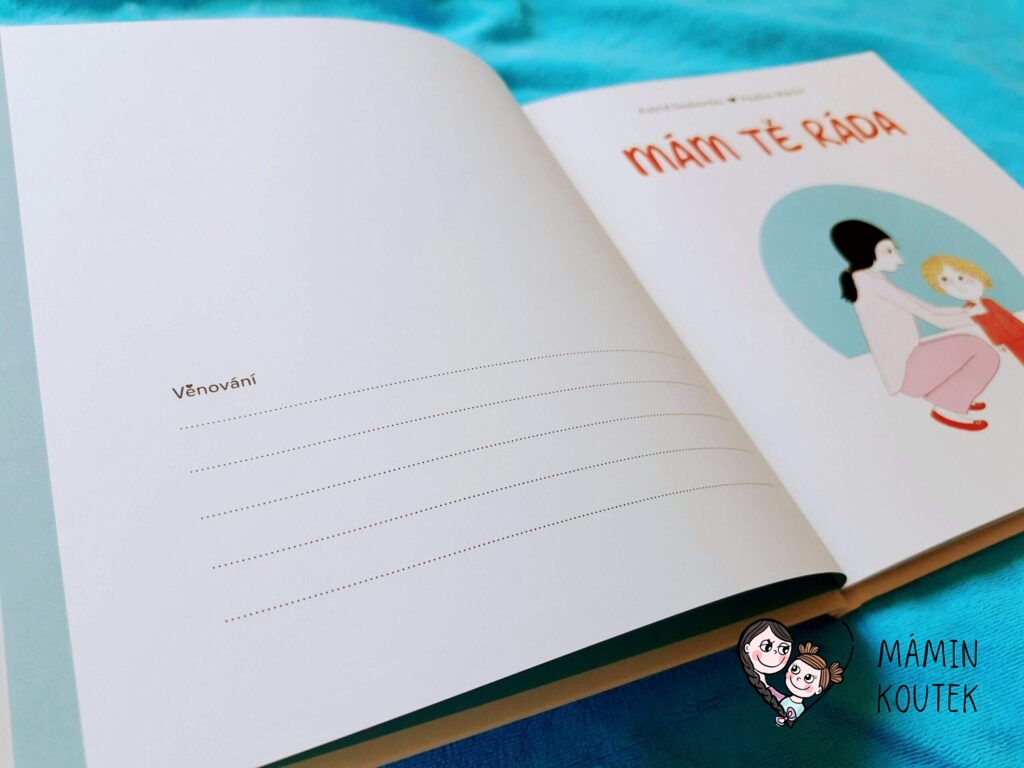 V úvodu knihy je místo na věnování. Normálně do knížek něco takového nepíšu a ani to nepovažuji za důležité. Ale u této knížky ho zcela chápu. Knihou totiž může máma vyjádřit, že má dítě ráda, takže se úplně hodí tam vepsat komu konkrétně je kniha (a pocity) určeny. Naštěstí je zde spousta řádků, tak můžete doplnit klidně i všechny vaše děti.