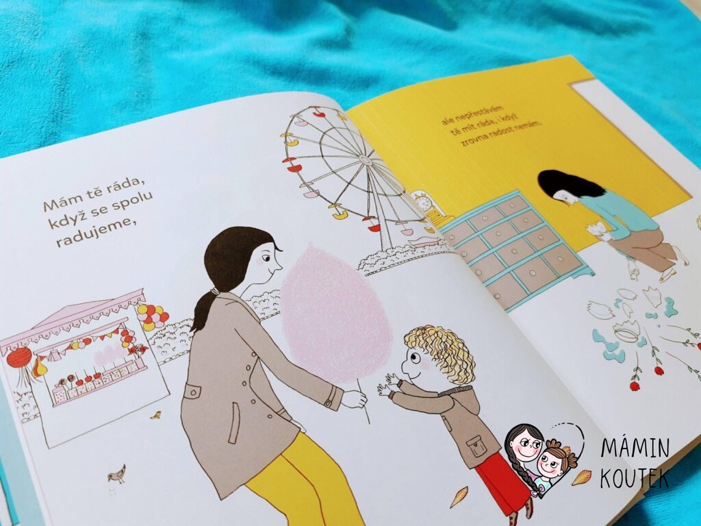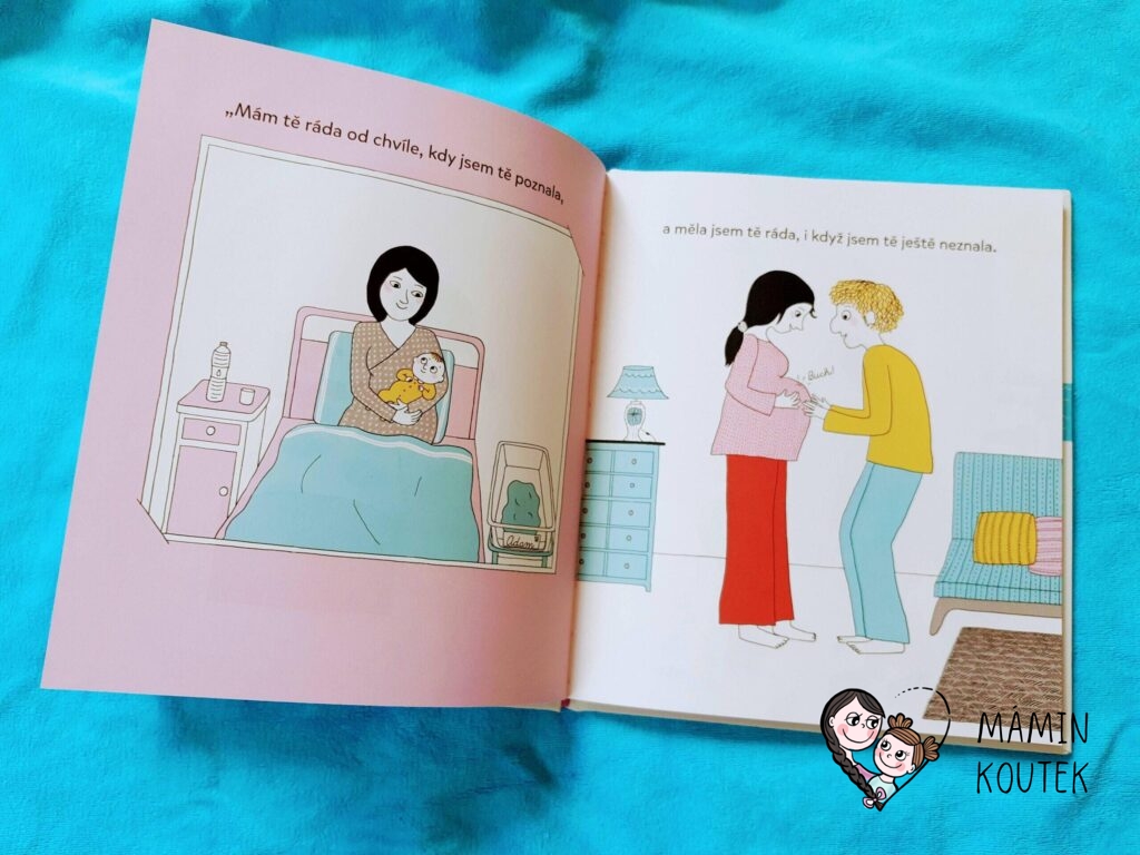 A tím začíná vyprávění, kdy maminka ukazuje různé situace, ve kterých má dítě ráda. Třeba už od první chvíle v bříšku, kdy dítě ještě neznala, ale také při prvním poznání v nemocnici.