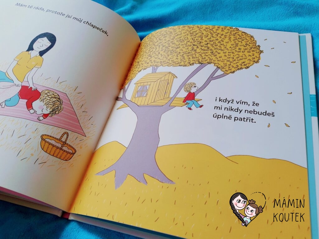 Někdy jsme se i sama zarazila, jak moc je knížka pravdivá. („Mám Tě ráda, protože jsi můj chlapeček, i když vím, že mi nikdy nebudeš úplně patřit.“)
