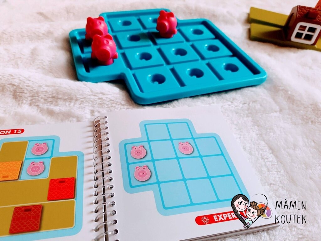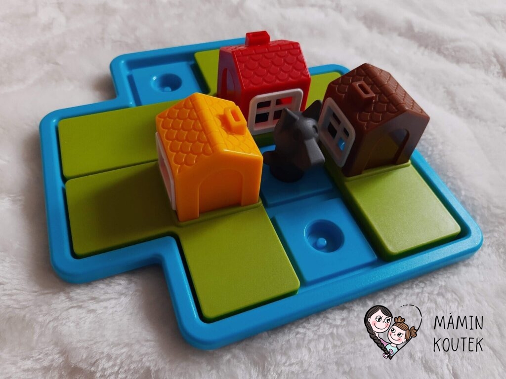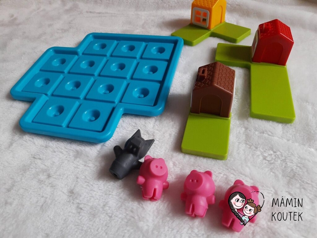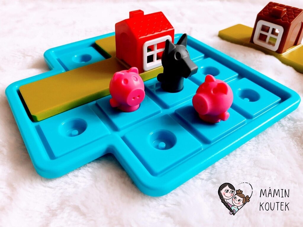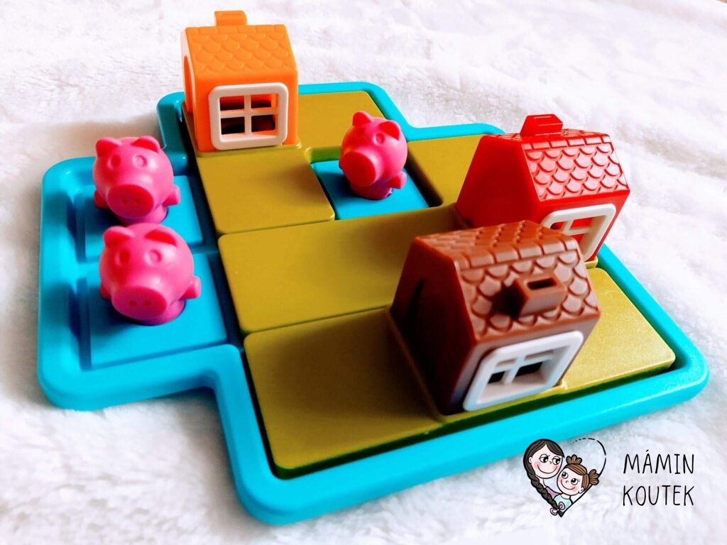 Tři malá prasátka jsou naší první smart game, kterou jsou vyzkoušeli. Byla jsem zvědavá hlavně na princip, protože hru pro jednoho jsem si moc nedokázala představit. Ale pravdou je, že je to fakt zajímavé a zábavné. Hra má jednoduchá pravidla, ale provedení vždy lehké není. U některých úrovní jsem se zapotila i já, takže si člověk fakt zapřemýšlí.