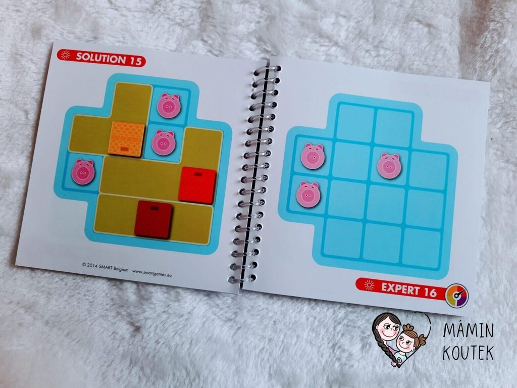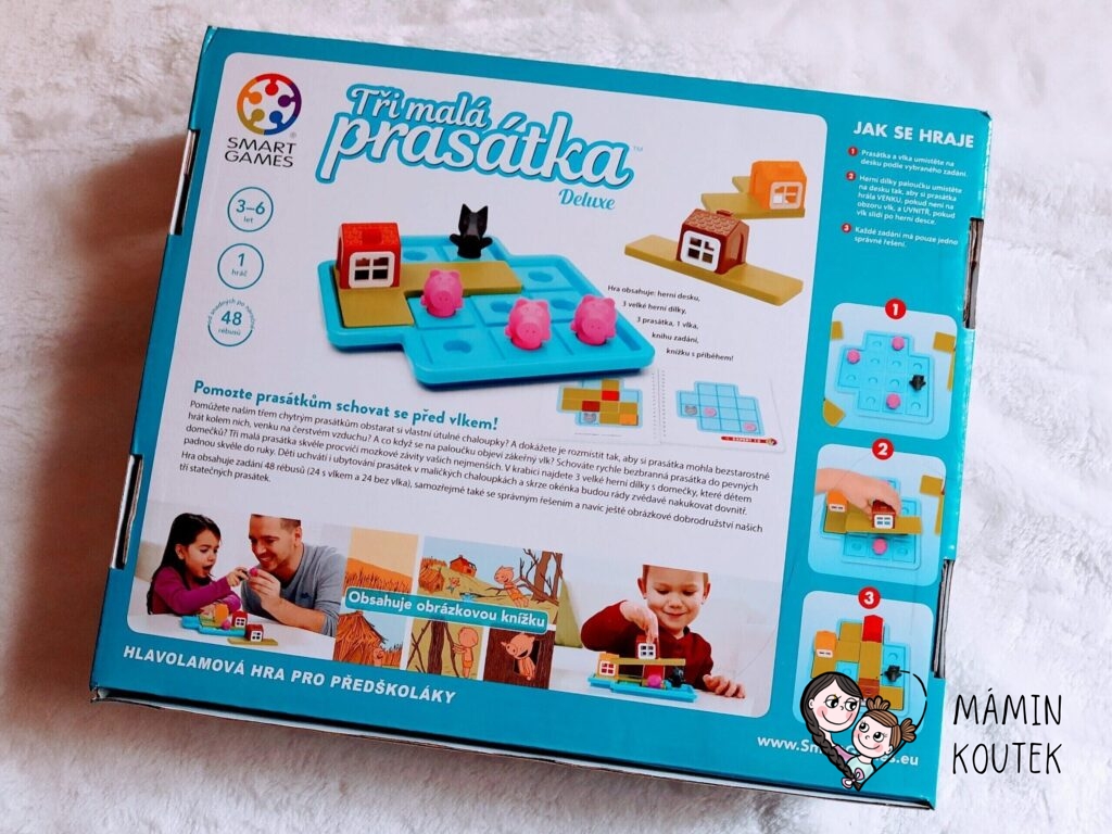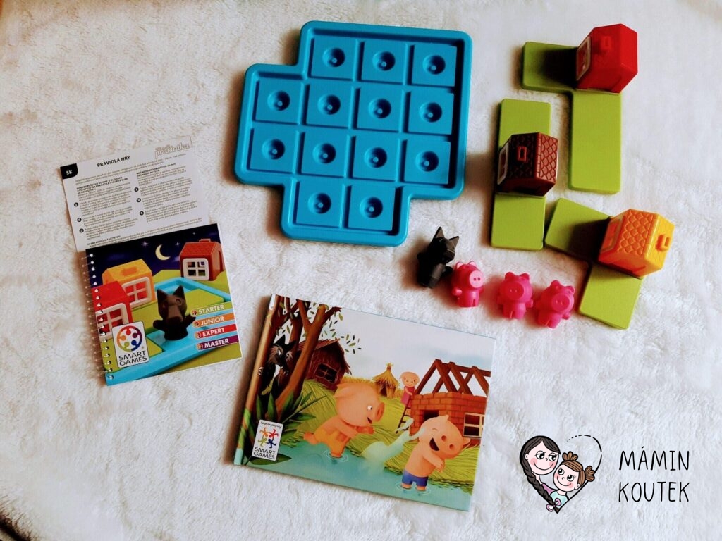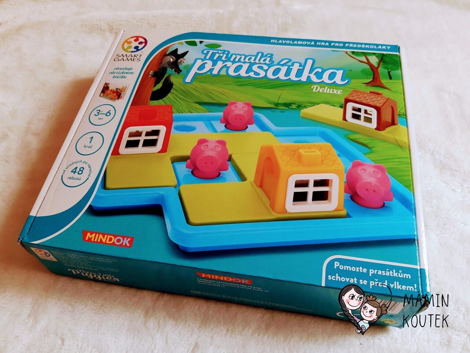 Tři malá prasátka jsou naší první smart game, kterou jsou vyzkoušeli. Byla jsem zvědavá hlavně na princip, protože hru pro jednoho jsem si moc nedokázala představit. Ale pravdou je, že je to fakt zajímavé a zábavné. Hra má jednoduchá pravidla, ale provedení vždy lehké není. U některých úrovní jsem se zapotila i já, takže si člověk fakt zapřemýšlí.