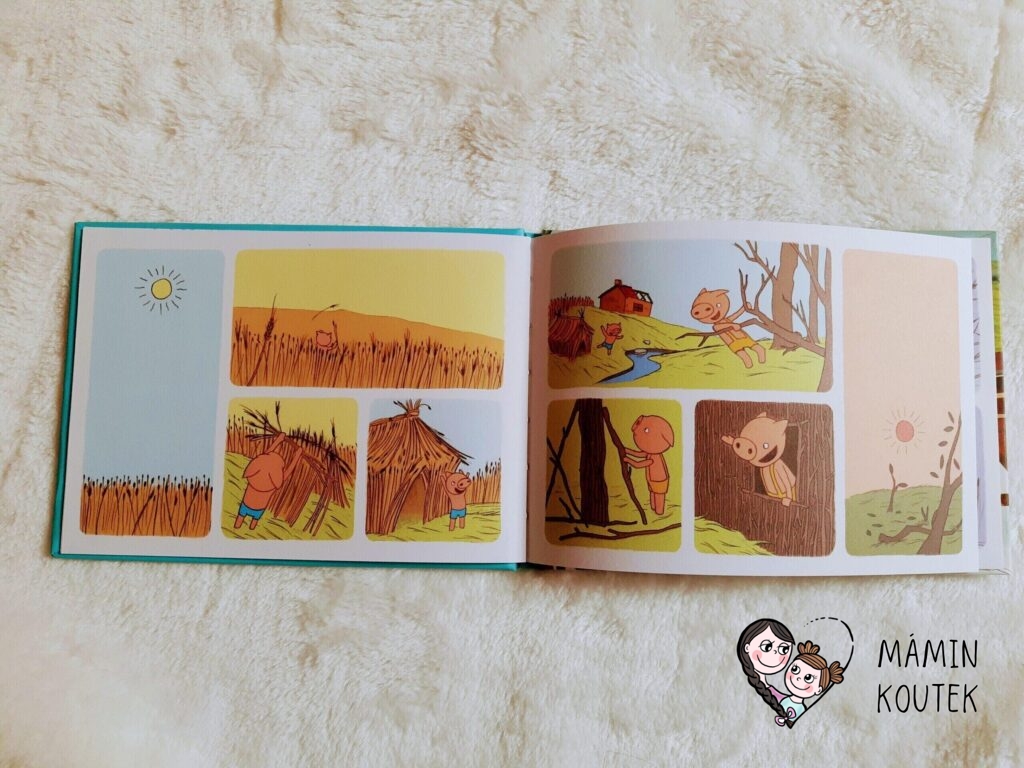 U nás hodně potěšila i knížka, kde najdete znázorněn příběh o třech malých prasátkách. Kniha je beze slov, takže příběh budete muset povyprávět sami, ale obrázků je zde opravdu hodně, takže je to celkem snadné.