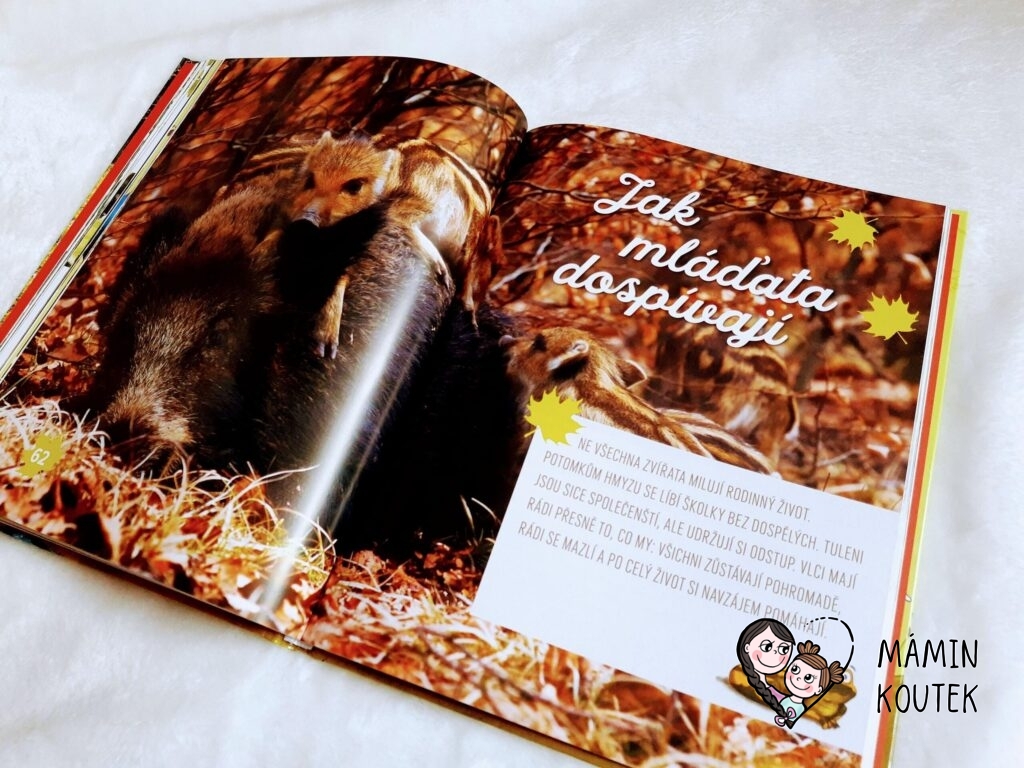 V knize najdeme také kapitolu o tom, jak mláďata dospívají. Někdo žije ve velkém rodinném kruhu, někdo preferuje být sám, někteří dokonce dospívají u cizích rodičů. A co mazlení a kontakty? Ani to není v knize zapomenuto…