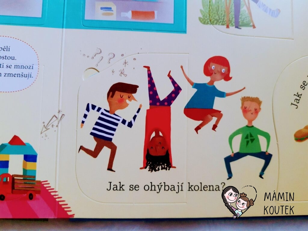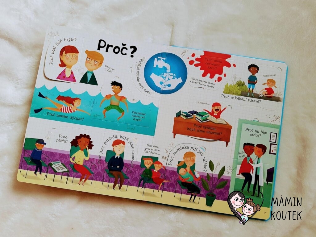 Obrázky jsou krásně barevné a nechybí ani ilustrace konkrétních lidských orgánů a dalších prvků s tělem spojených. Otevíracích okének je zde opět hodně a jsou navíc různých tvarů a velikostí. Odpovědi na otázky jsou podrobné, takže se jedná o knížku, která děti (a možná i dospělé) skutečně mnohé naučí.