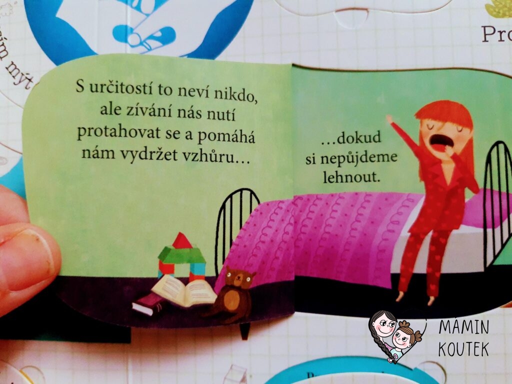 Kniha dětem zajímavou formou ukazuje, jak funguje naše tělo. Zpracování v podobě otázek je netradiční, ale pro děti určitě zábavnější než kdyby zde našly jen obrázek těla a popis. Navíc otázky jim budou určitě blízké (alespoň u nás je to pořád nějaké proč, kde, jak, co…).