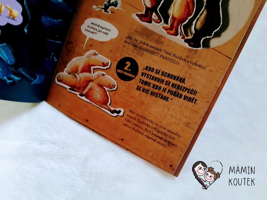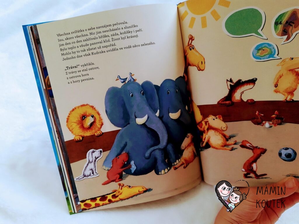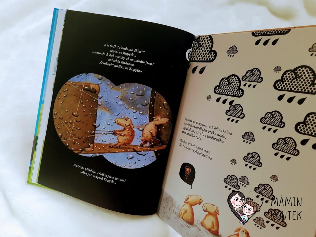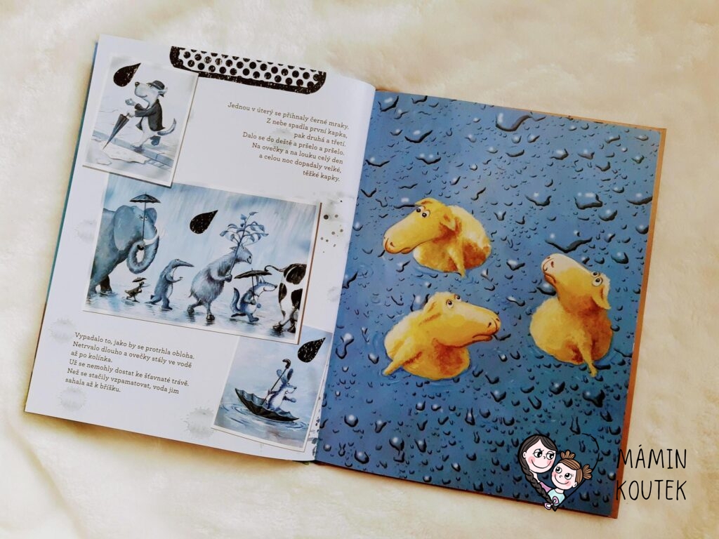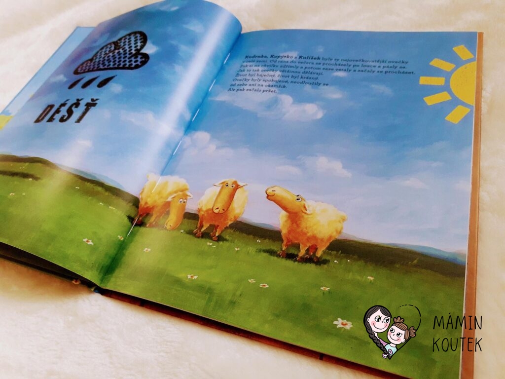 V knize najdeme krásnou pohádku o třech ovečkách – Kudrnka, Kopýtko a Kulíšek. Ovečky milují louku a rády se pasou. Jenže jednoho dne začne pršet. A nepřestává, takže je brzo voda všude.