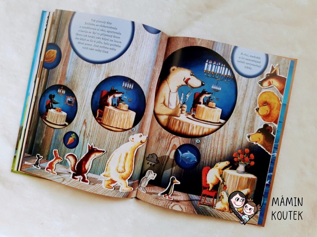 Kniha je částečně kreslená, někdy zase obrázky vypadají jako nalepené. Najdeme tu tedy více uměleckých stylů. Kniha je díky tomu pestrá a každá stránka je jiná. Mě osobně by se klidně líbily jen klasické ilustrace, ale to už asi není tak moderní.