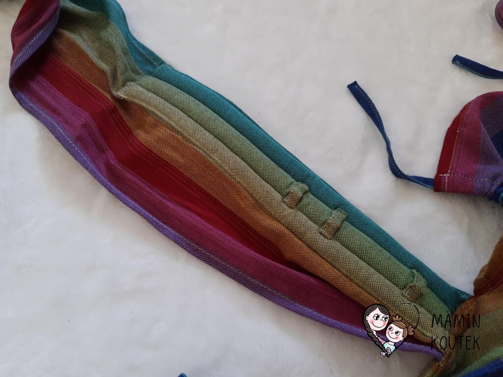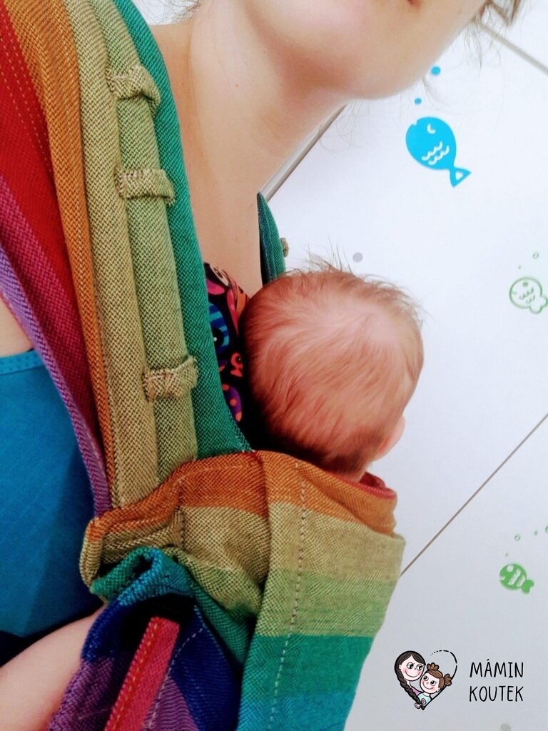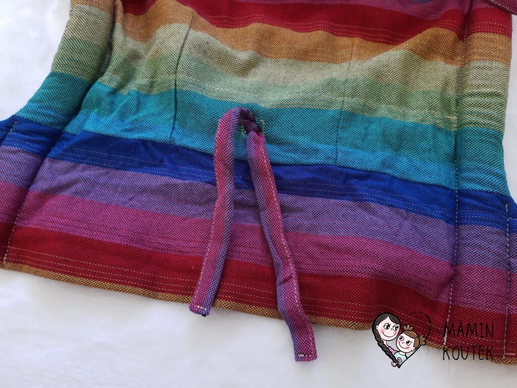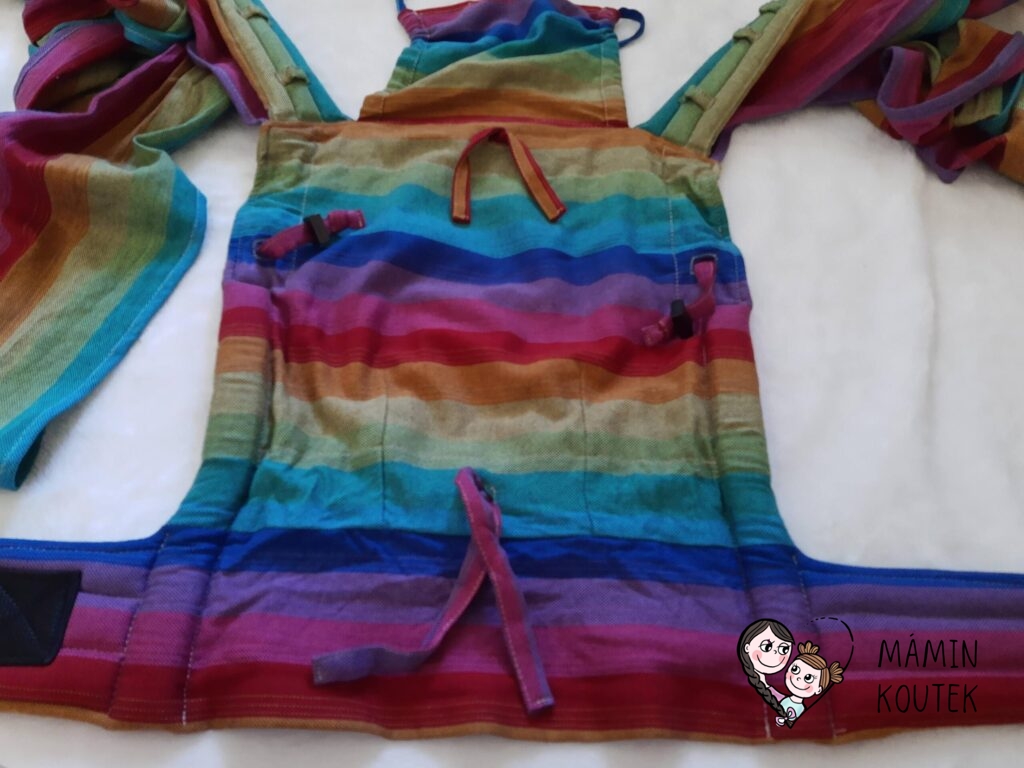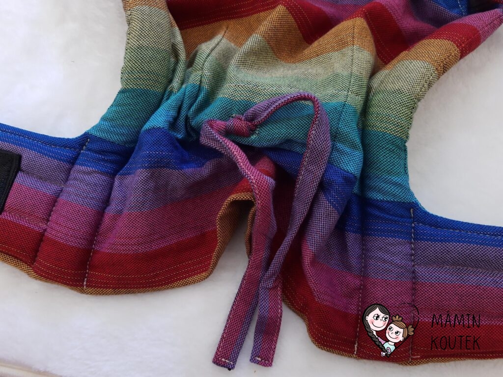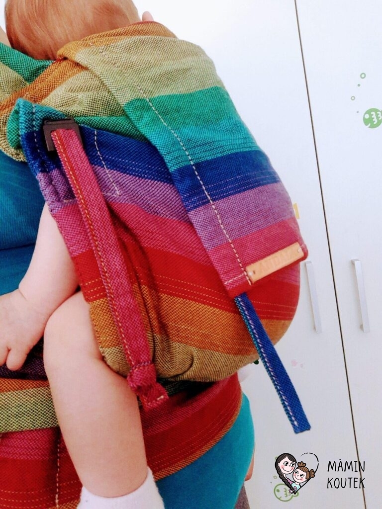 Nosítko je na pohled pěkné, na omak příjemné. Trochu jsem se bála šňůrek, jestli se nebudou povolovat, ale držely jak měly. Ramenní popruhy byly pohodlné, nosítko nikde netlačilo.