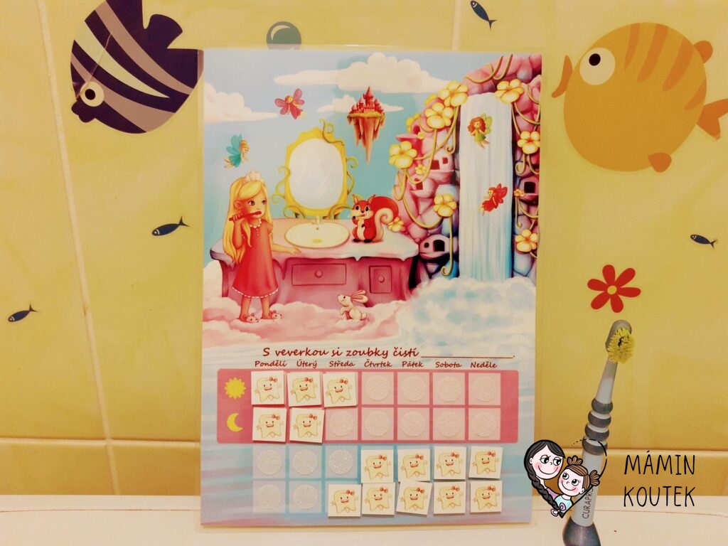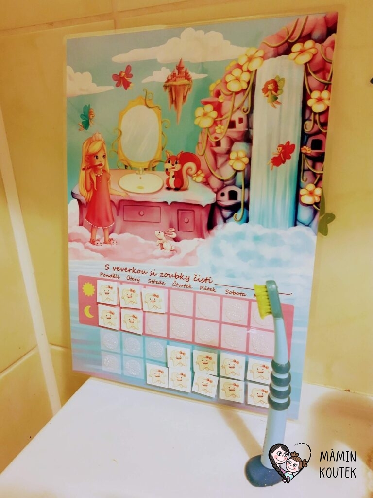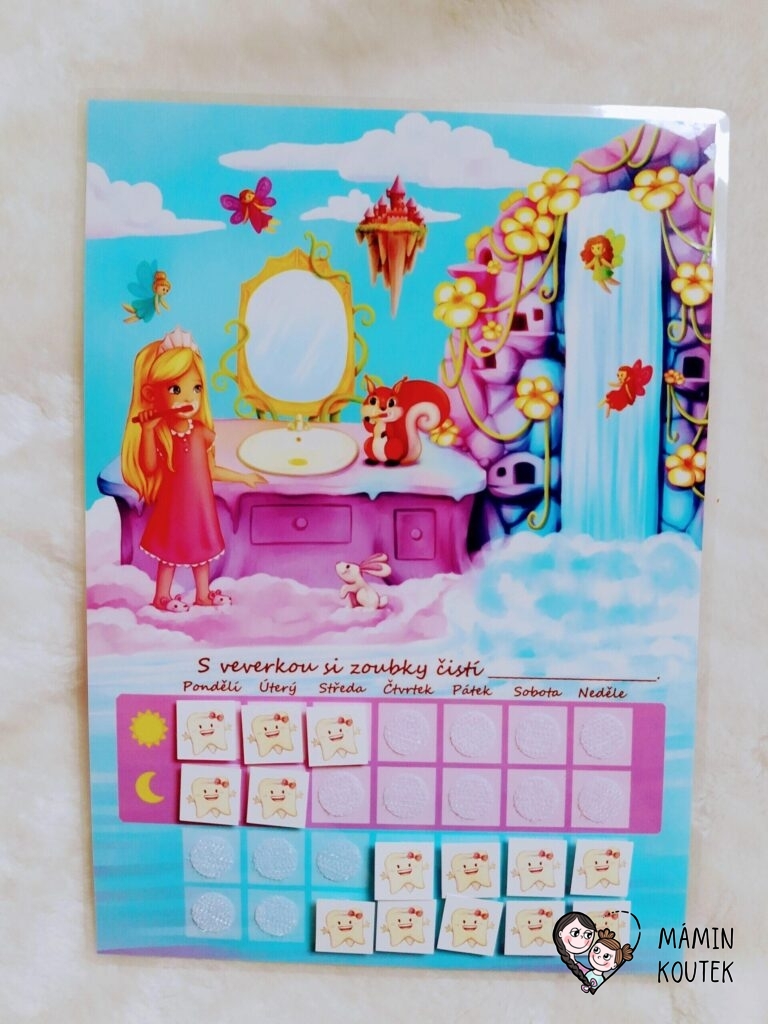 Tabulky děti hezky motivují k čištění zoubků. Ilustrace jsou originální, krásně barevné a navíc díky různým motivům můžete zvolit to, co je dítěti nejbližší (u nás třeba vyhrály víly).