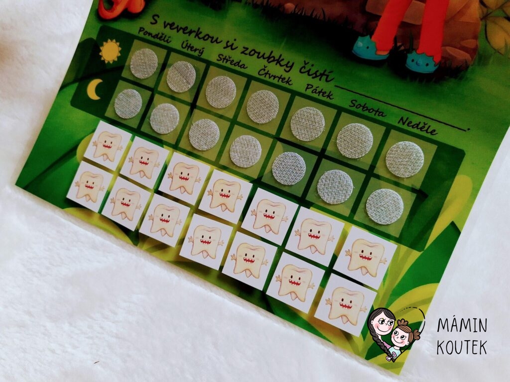 Celý projekt motivačních kartiček se nazývá Šikovná veverka, na každé tabulce tedy najdete alespoň malou veverku, která děti čištěním zoubků provází.