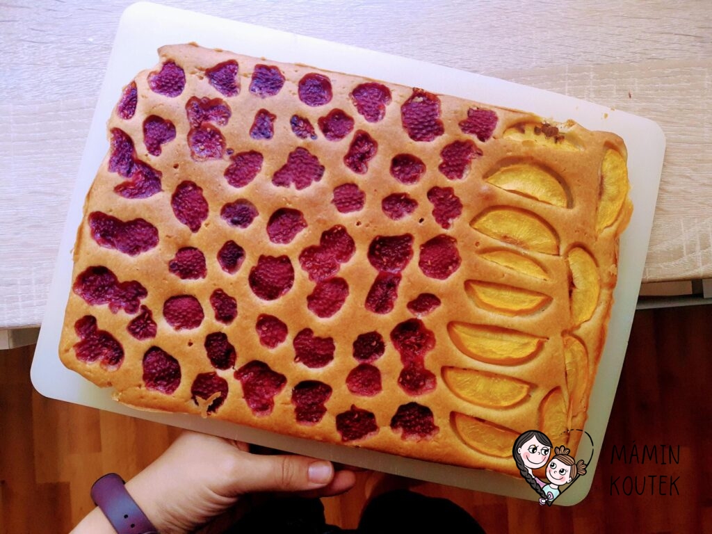 - Z ovoce máme rádi třeba maliny, díky čemuž má koláč pak sladko-kyselou chuť. Ale použít můžete v podstatě cokoli – jahody, borůvky, meruňky, rybíz…