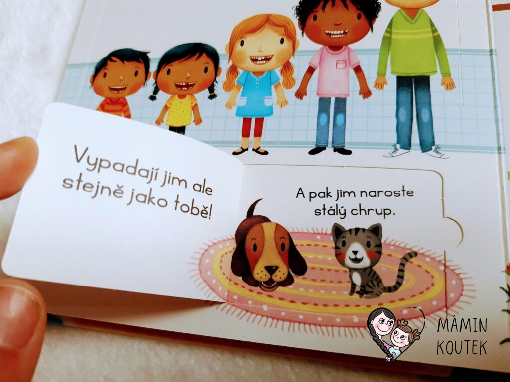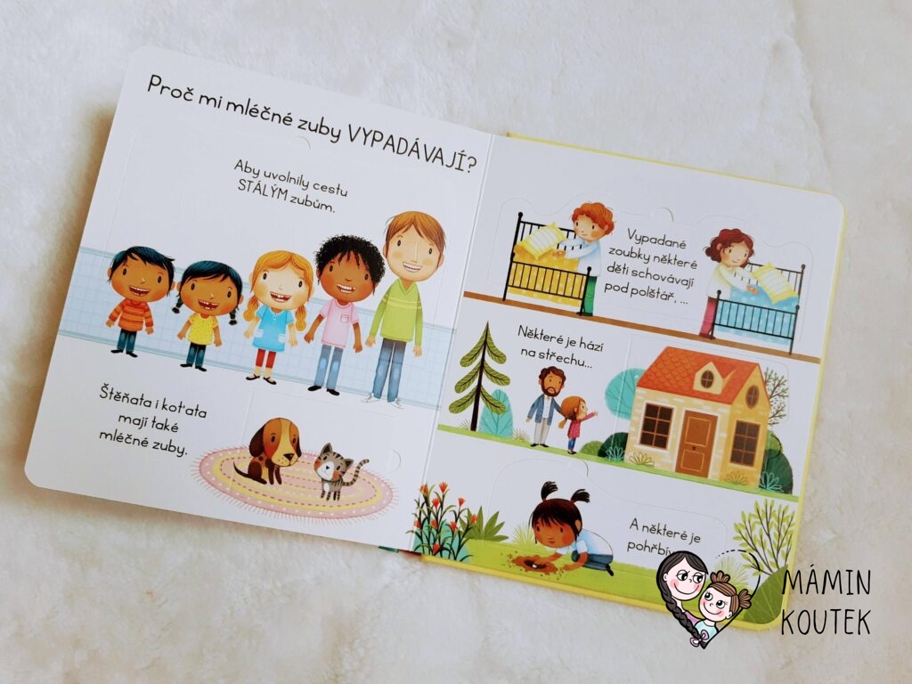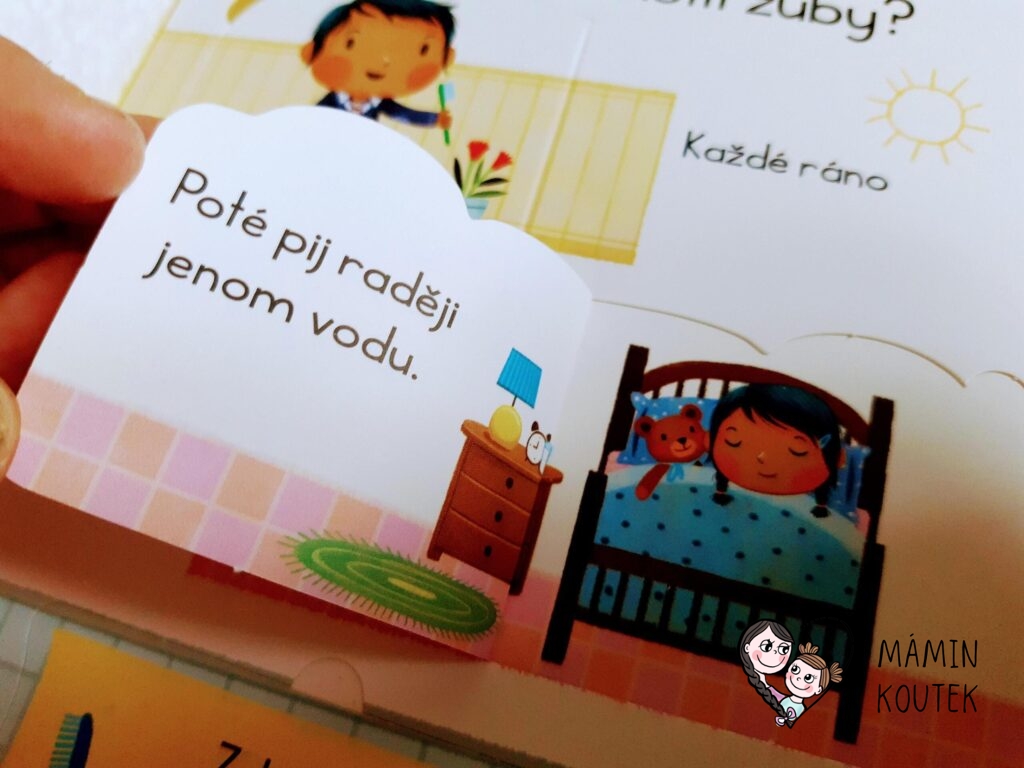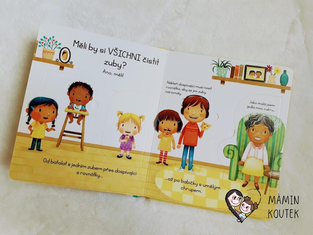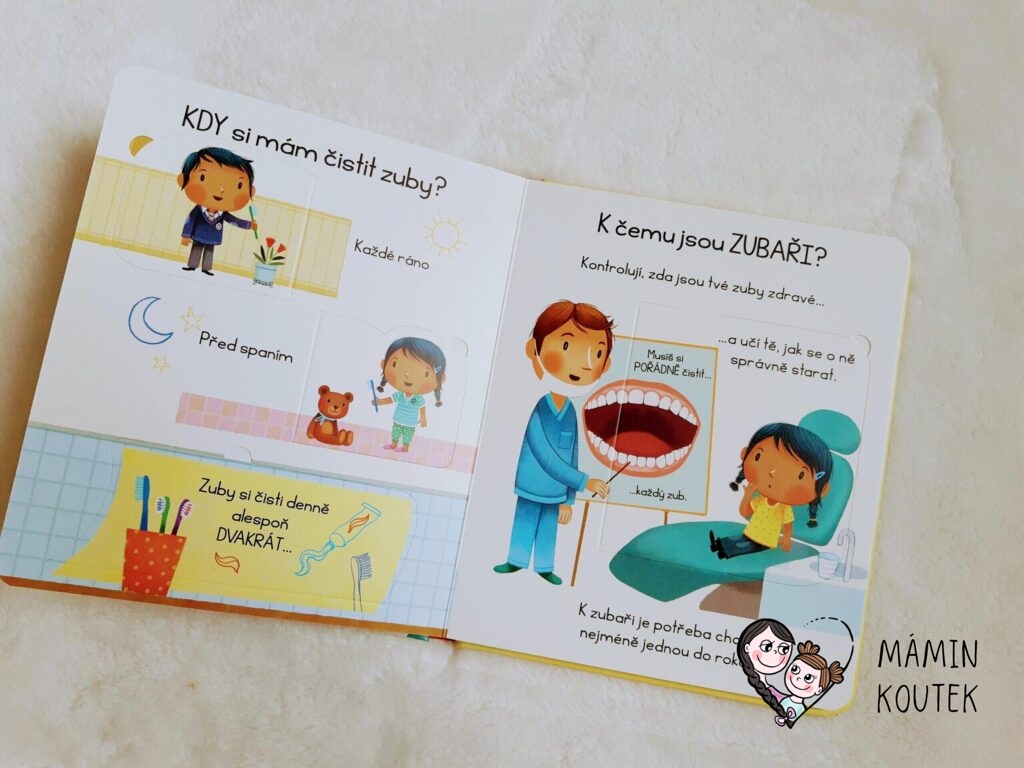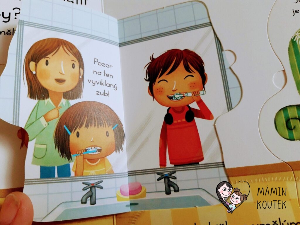 Rozhodli jsme se proto vyzkoušet novinku od Nakladatelství Svojtka – knihu Proč si musím čistit zuby. Knížka obsahuje spoustu okének, kde se děti dozví, proč je dobré si zuby každý den čistit. Hodí se proto skvěle pro zvědavce, ale i pro ty, kteří potřebují do čištění zoubků trošku popostrčit a namotivovat.