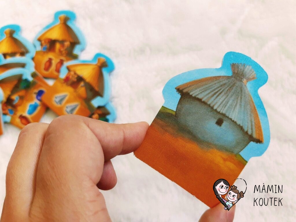 Každá hráč obdrží dále vesnici, do které si postupně staví chýše. Vesnice se lehce složí ze dvou části kartonu. Nemusí se ani rozdělávat, vleze do krabice i složená. Každý hráč si vybere barvu podle figurky, se kterou bude hrát.