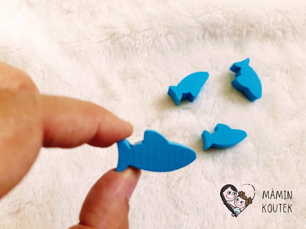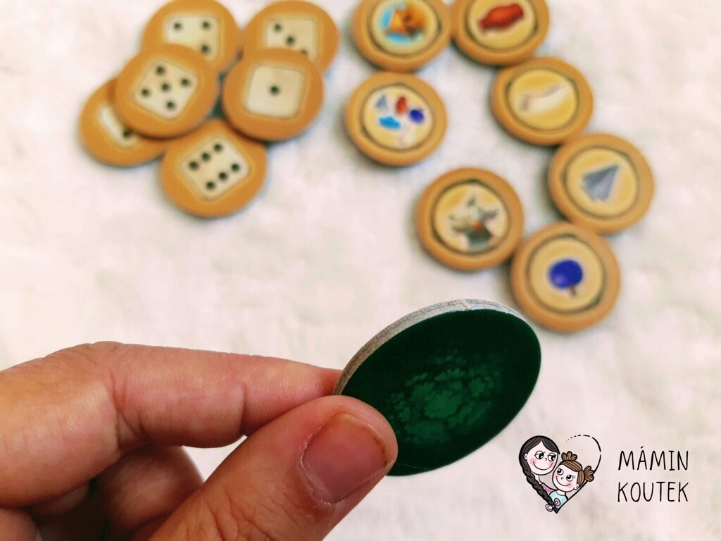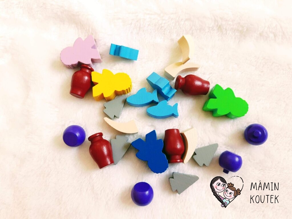 Hra je určena pro 4 hráče, proto jsou také figurky ve 4 barvách – modrá, žlutá, zelená a růžová. Toto rozdělení není úplně standardní, obzvláště ta růžová není častá, ale pro děti asi skvělý tah. Beky měla hned jasno, která figurka bude její.